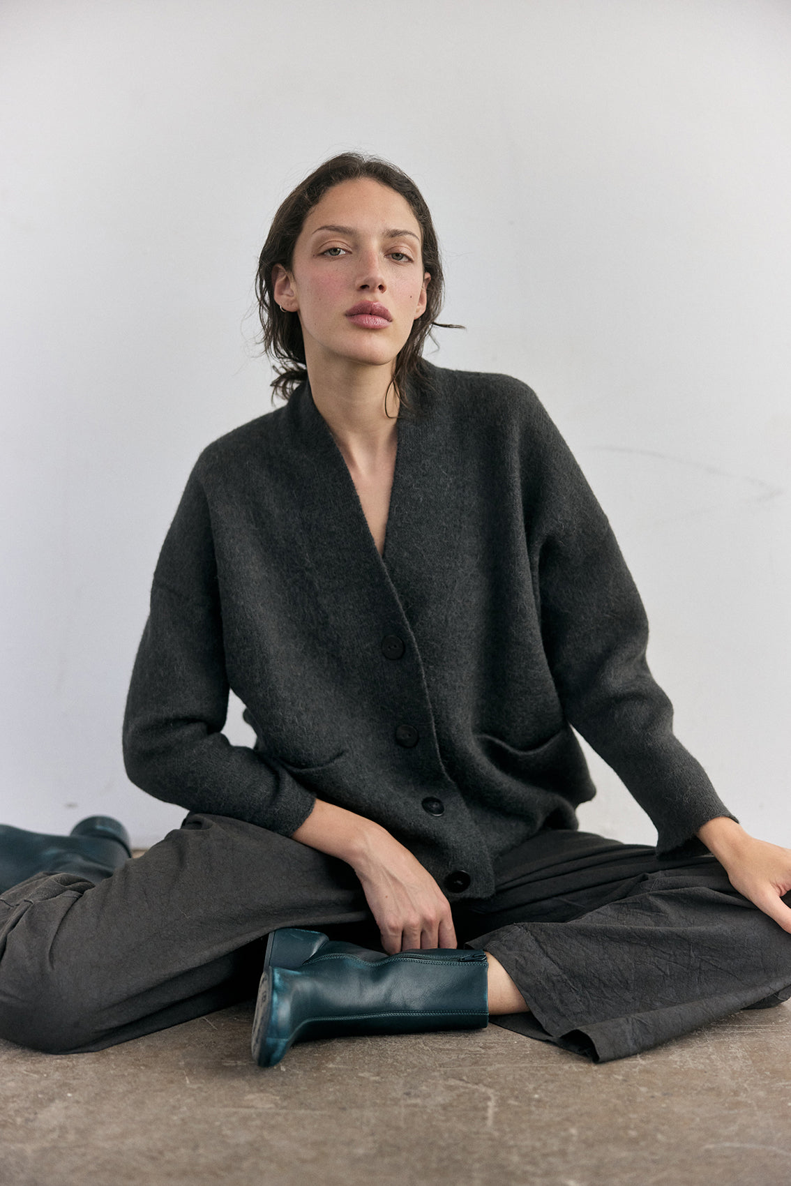 Cárdigan Felted Alpaca - Pizarra