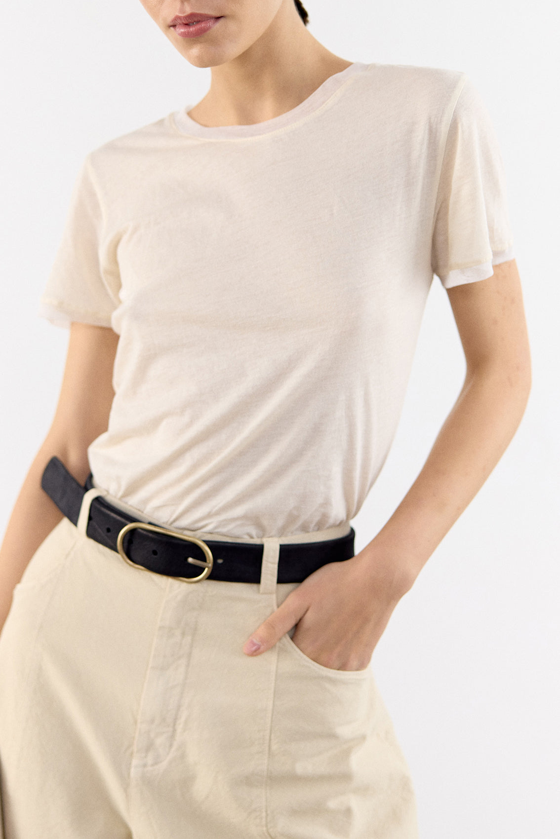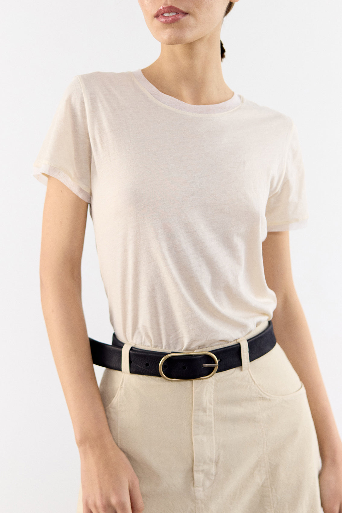 Silk Trim Pima Cotton T-Shirt - Mantequilla