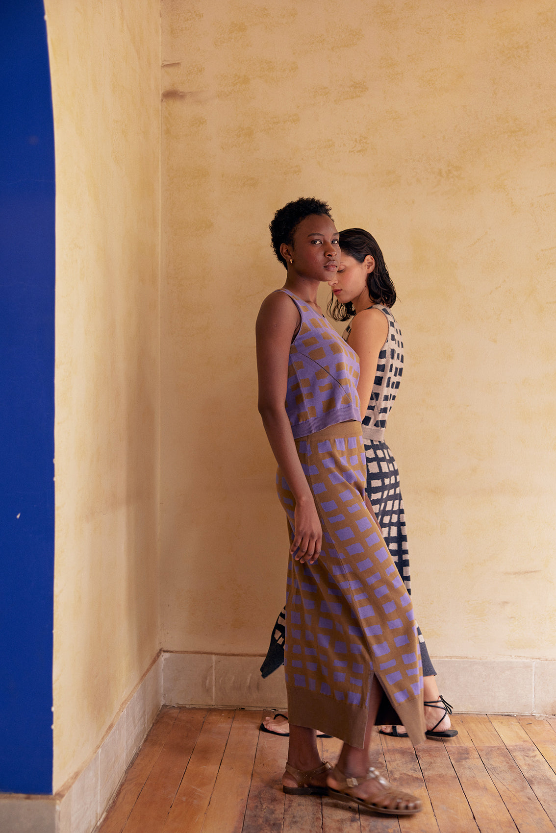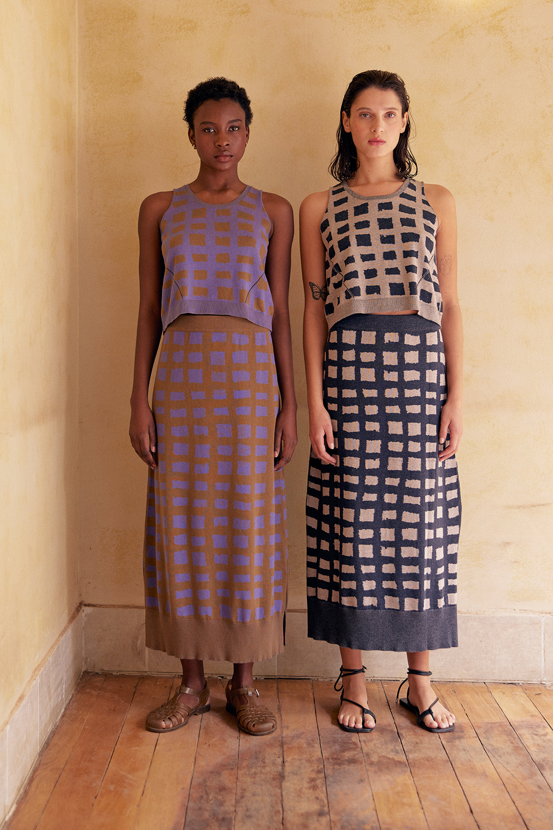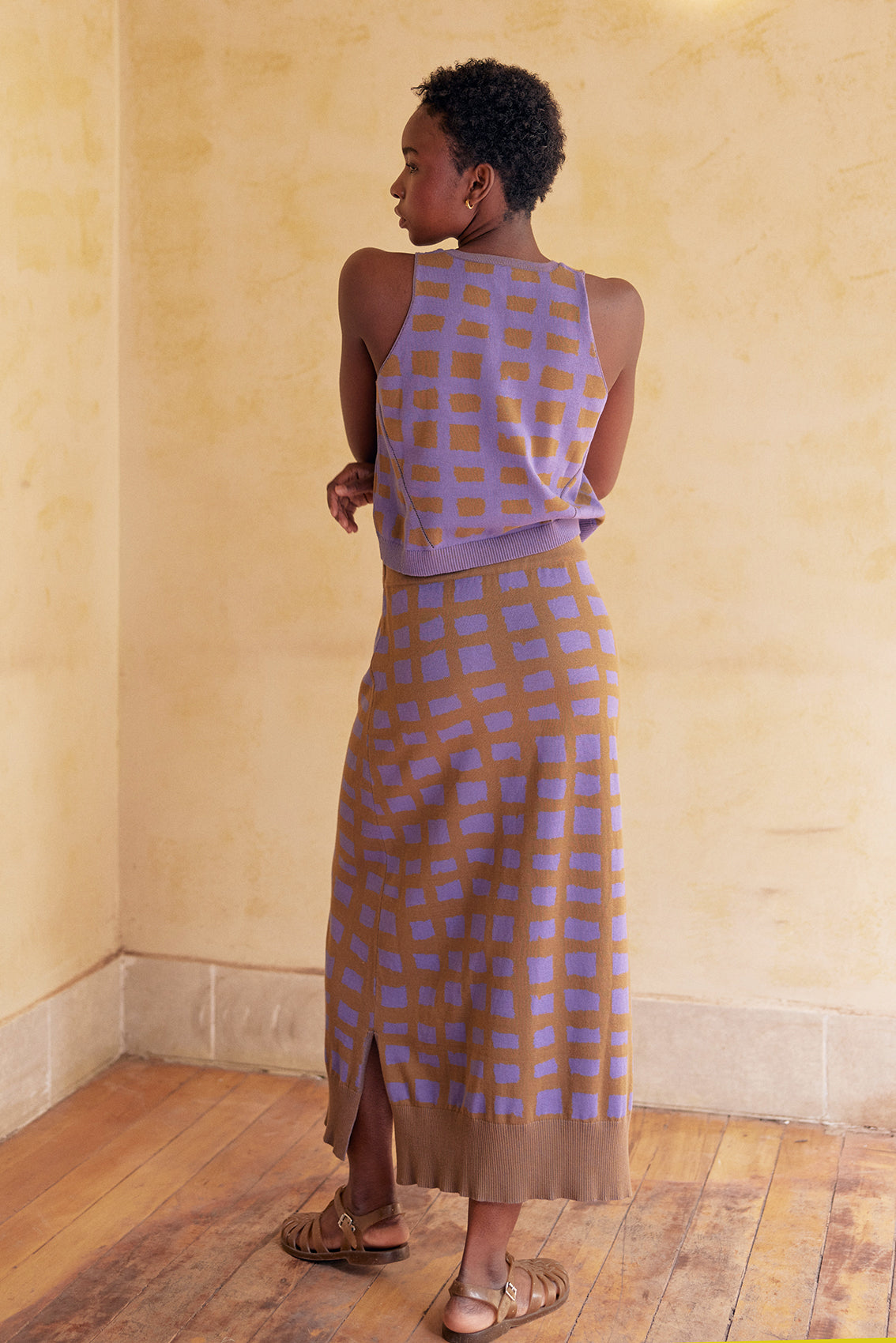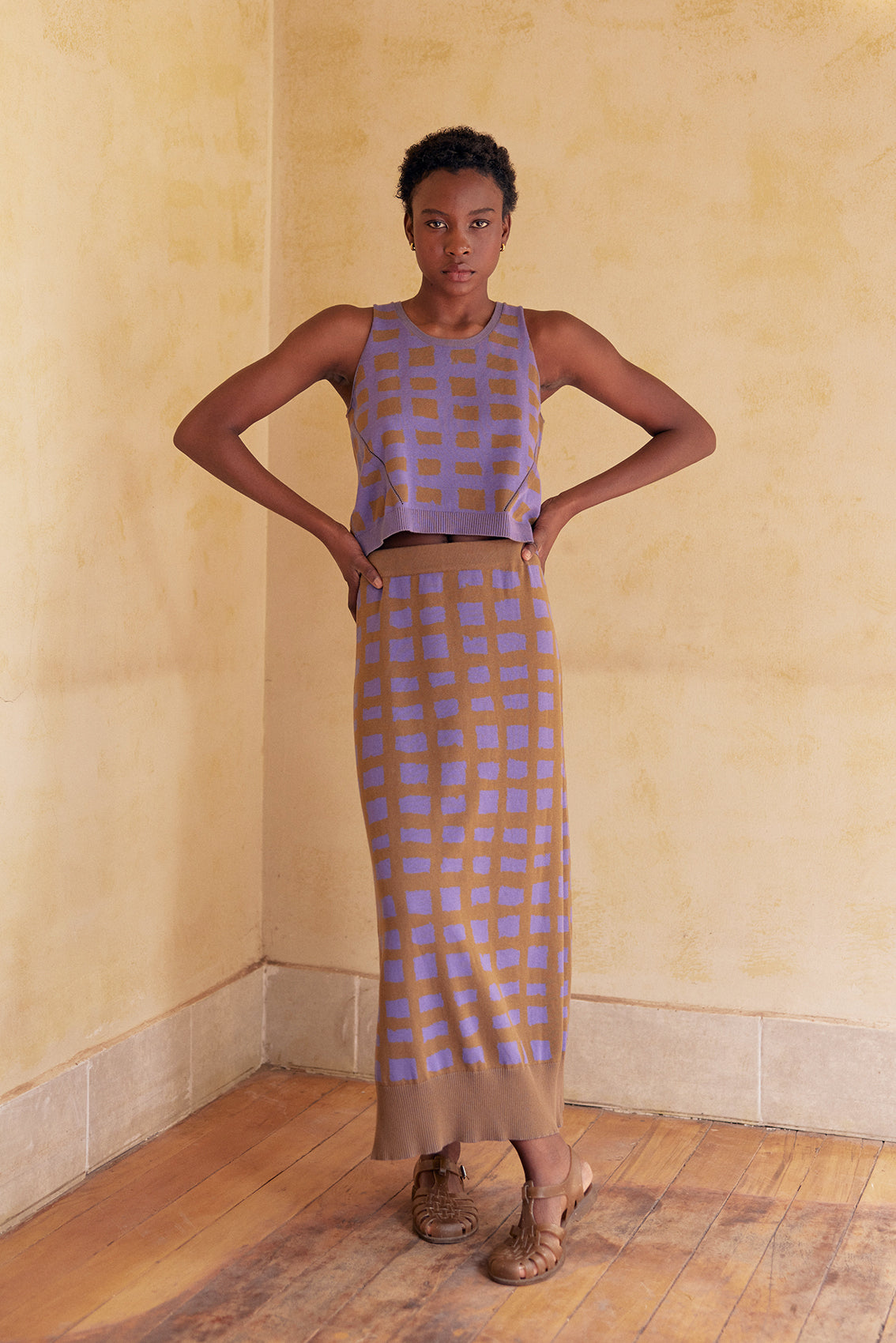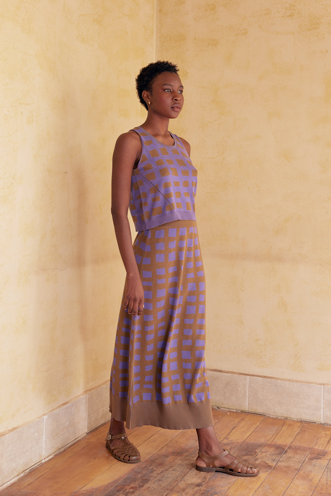 Hand-Drawn Grid Pattern Knitted Skirt Pima Cotton - Jacinto/Musgo