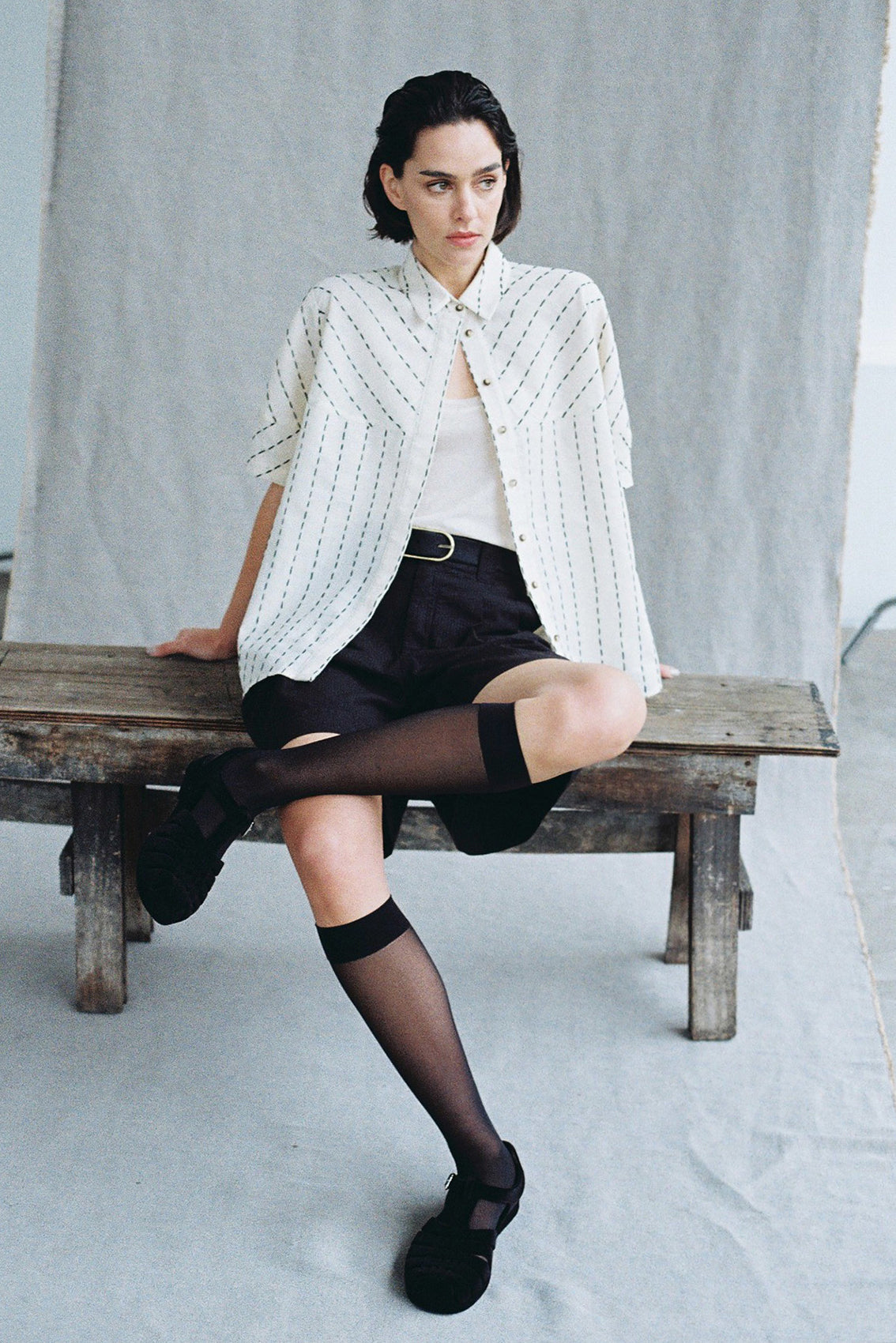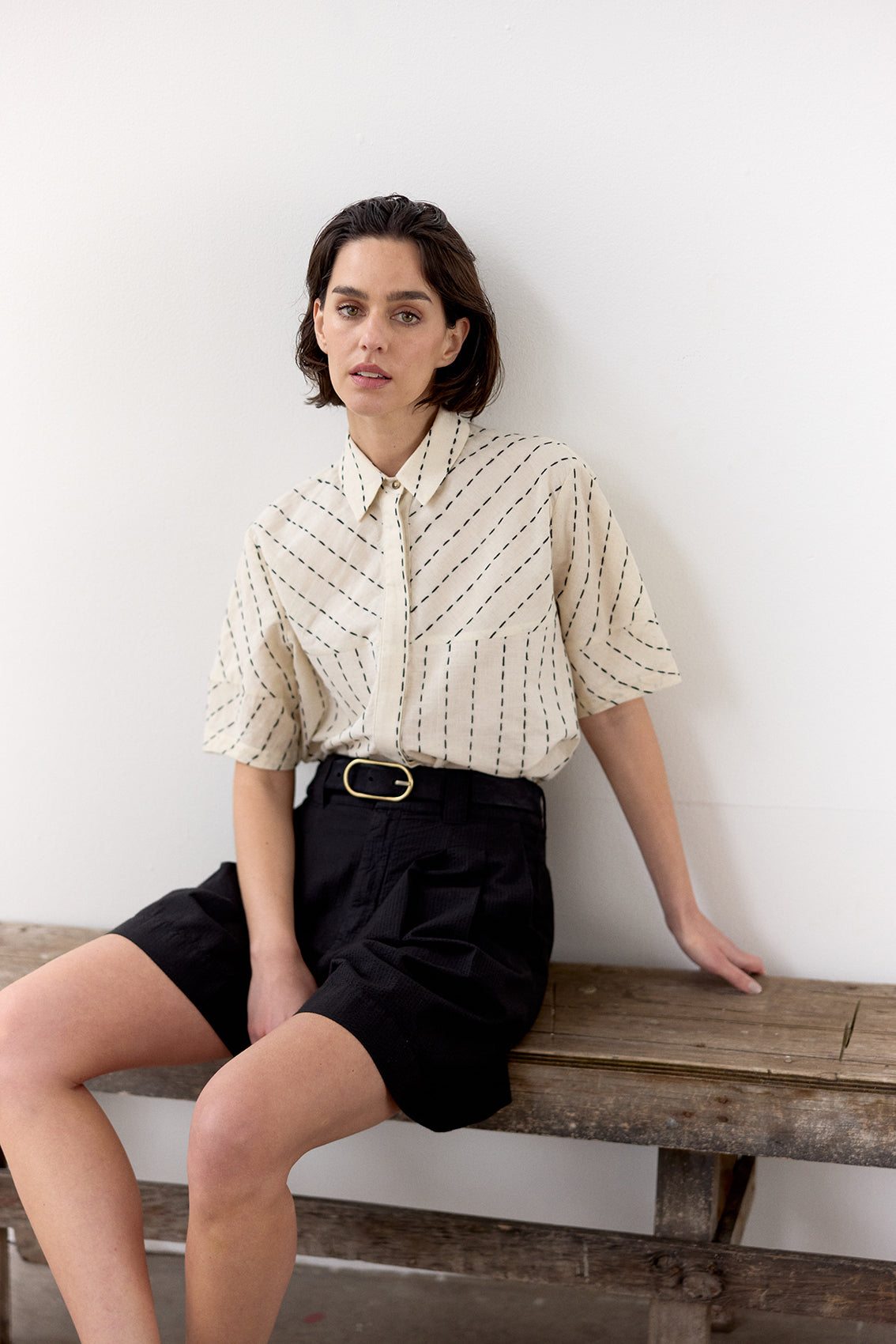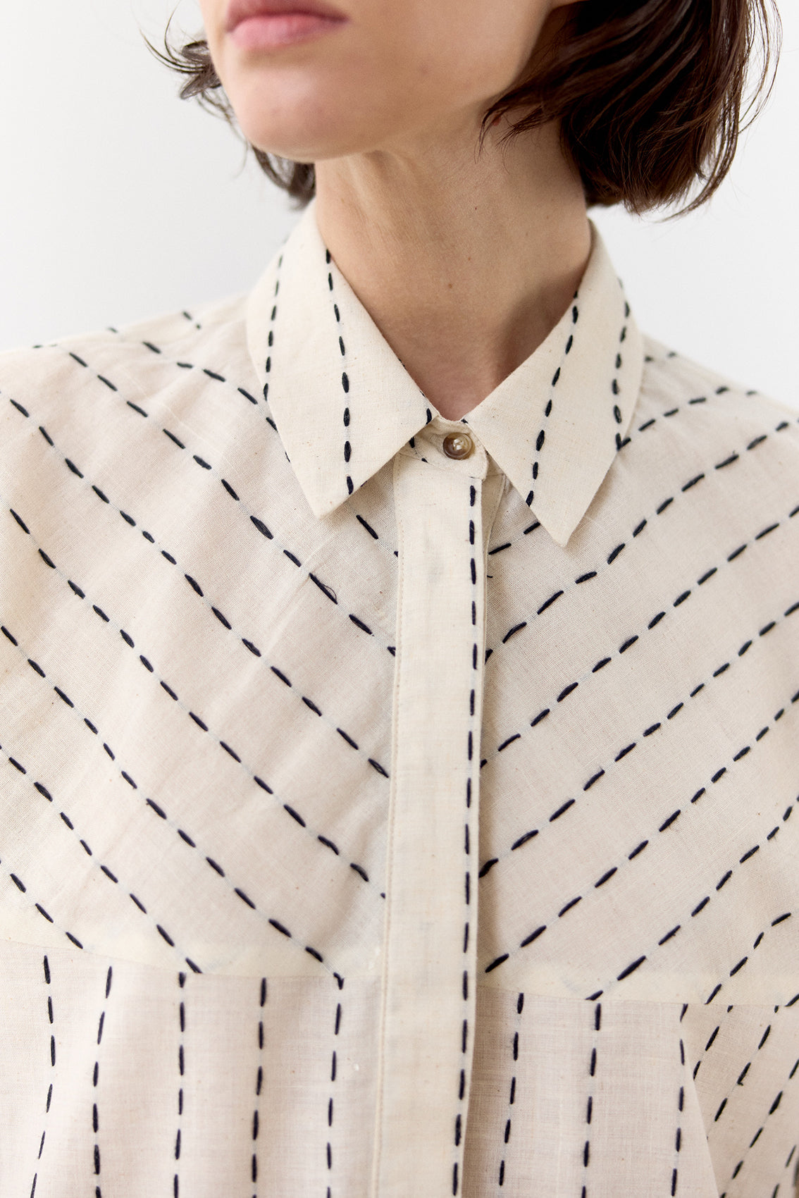 Hand-Stitched Short-Sleeve Cotton Blouse