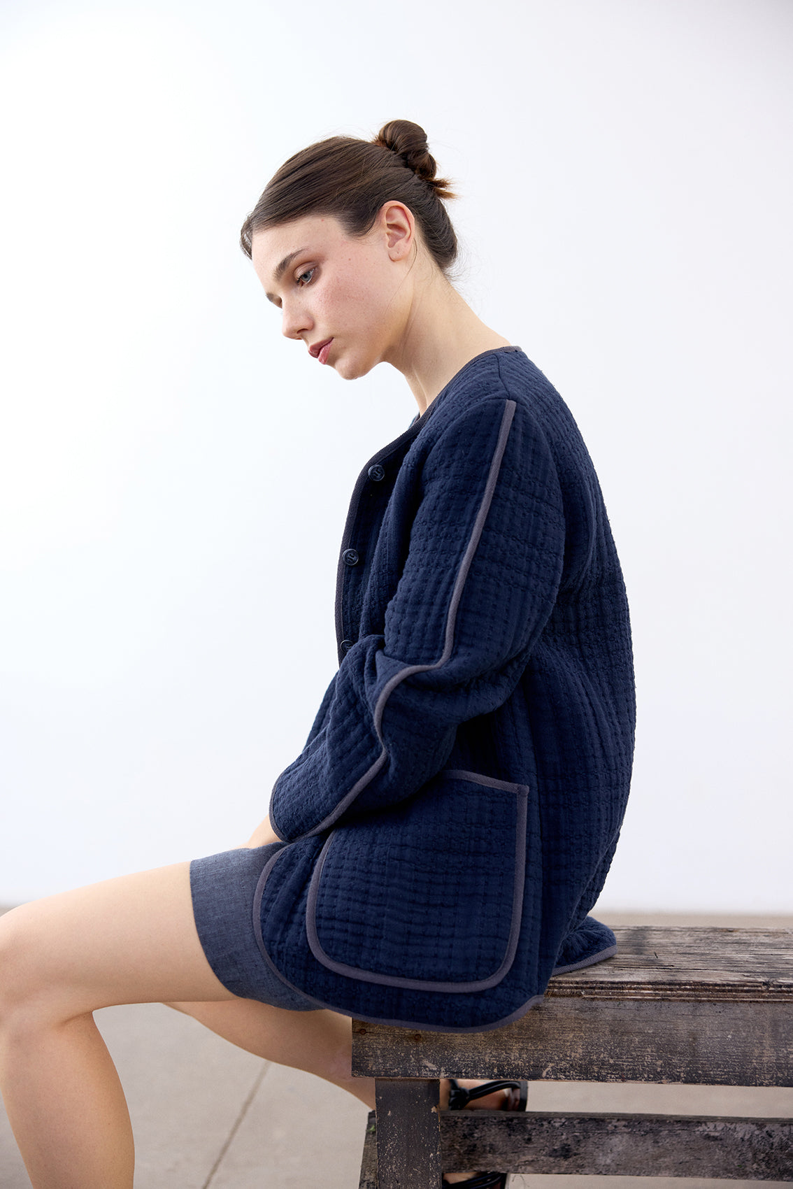 Jacquard Cotton Quilted Jacket - Medianoche