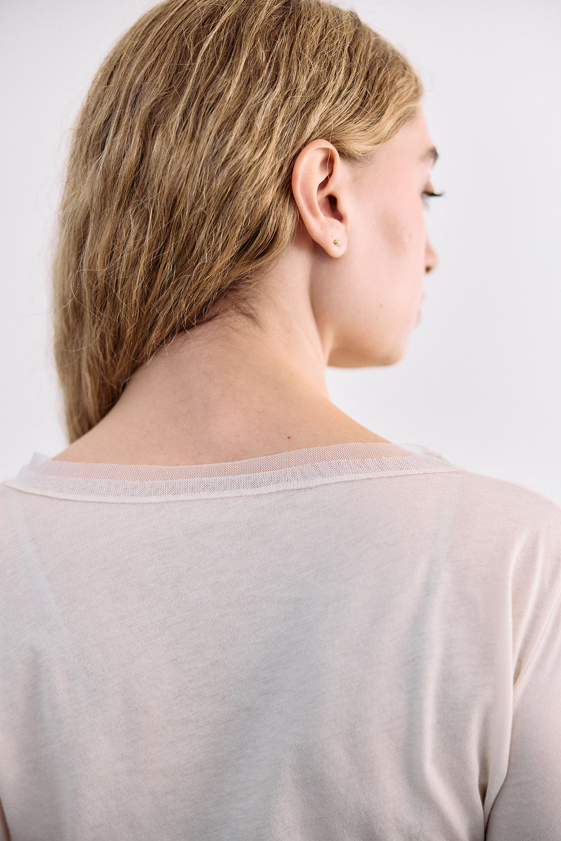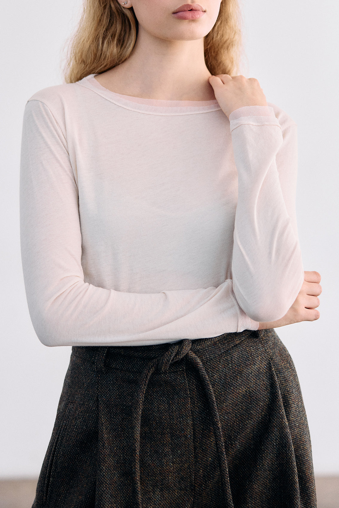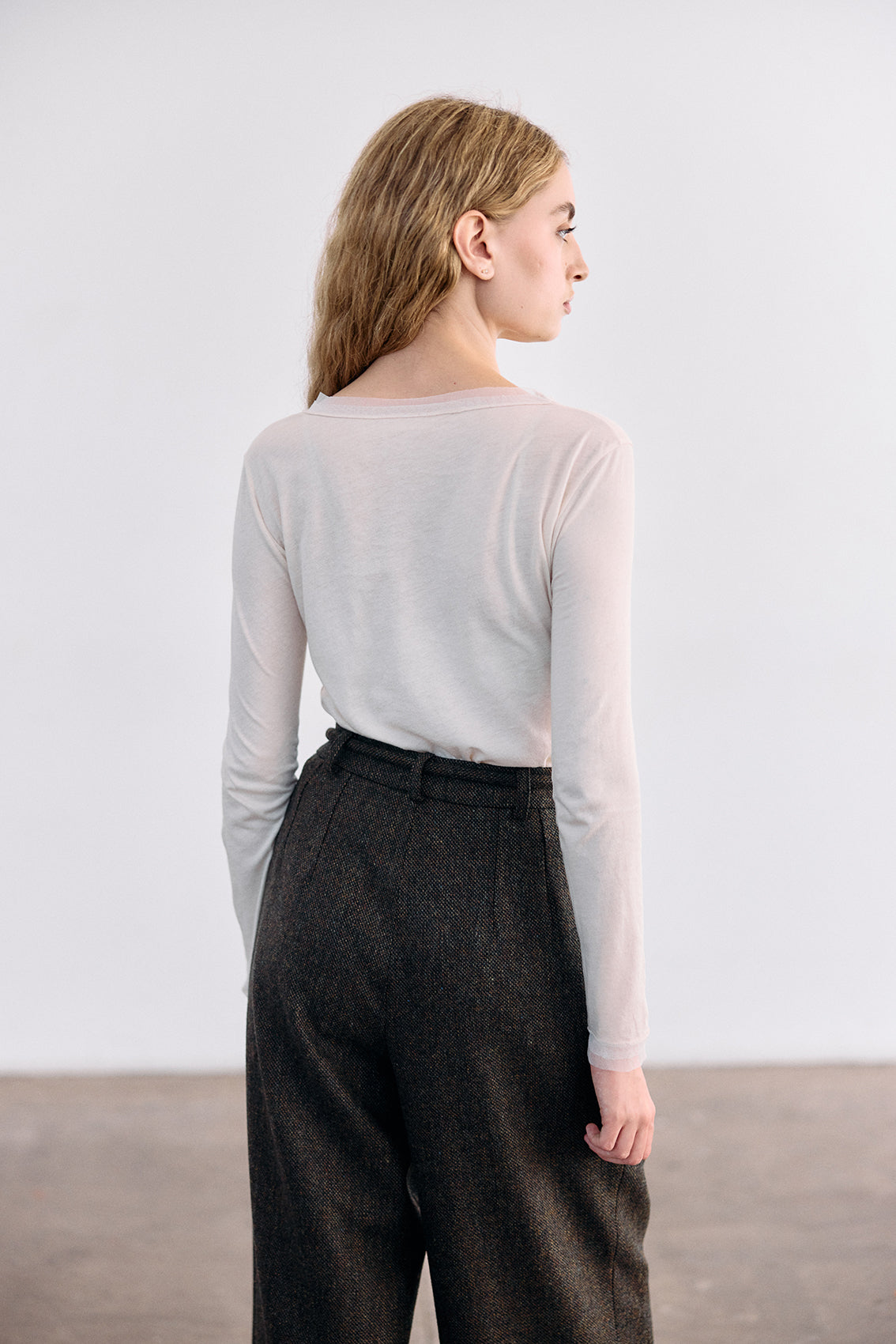 Essential long-sleeve top, made in 100% pima cotton. This thin woven basic features a classic crew neck and is finished with 100% silk trim edges. A high-quality essential first layer for autumn and winter.