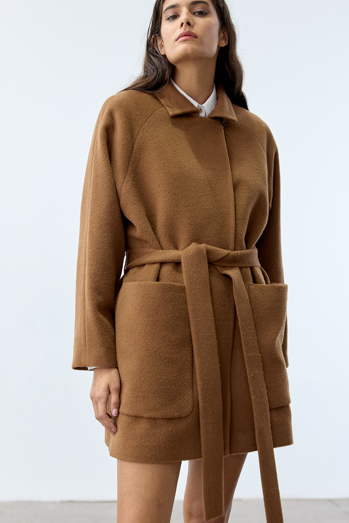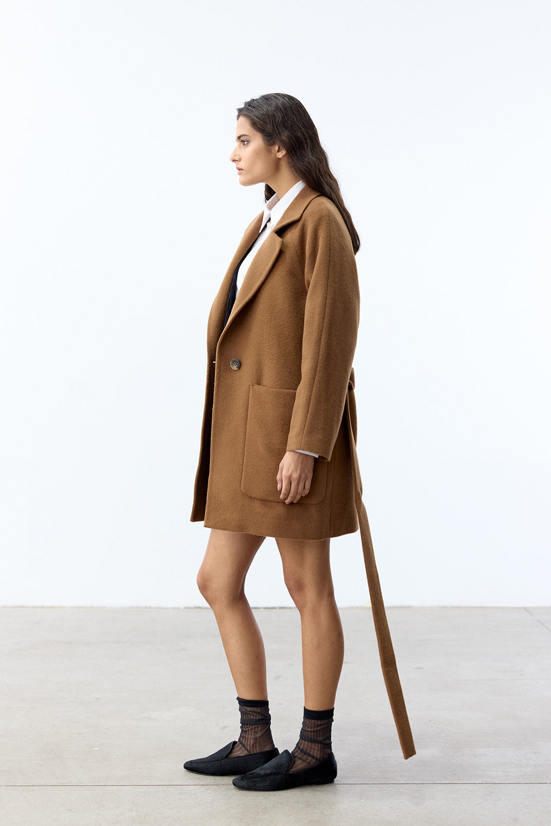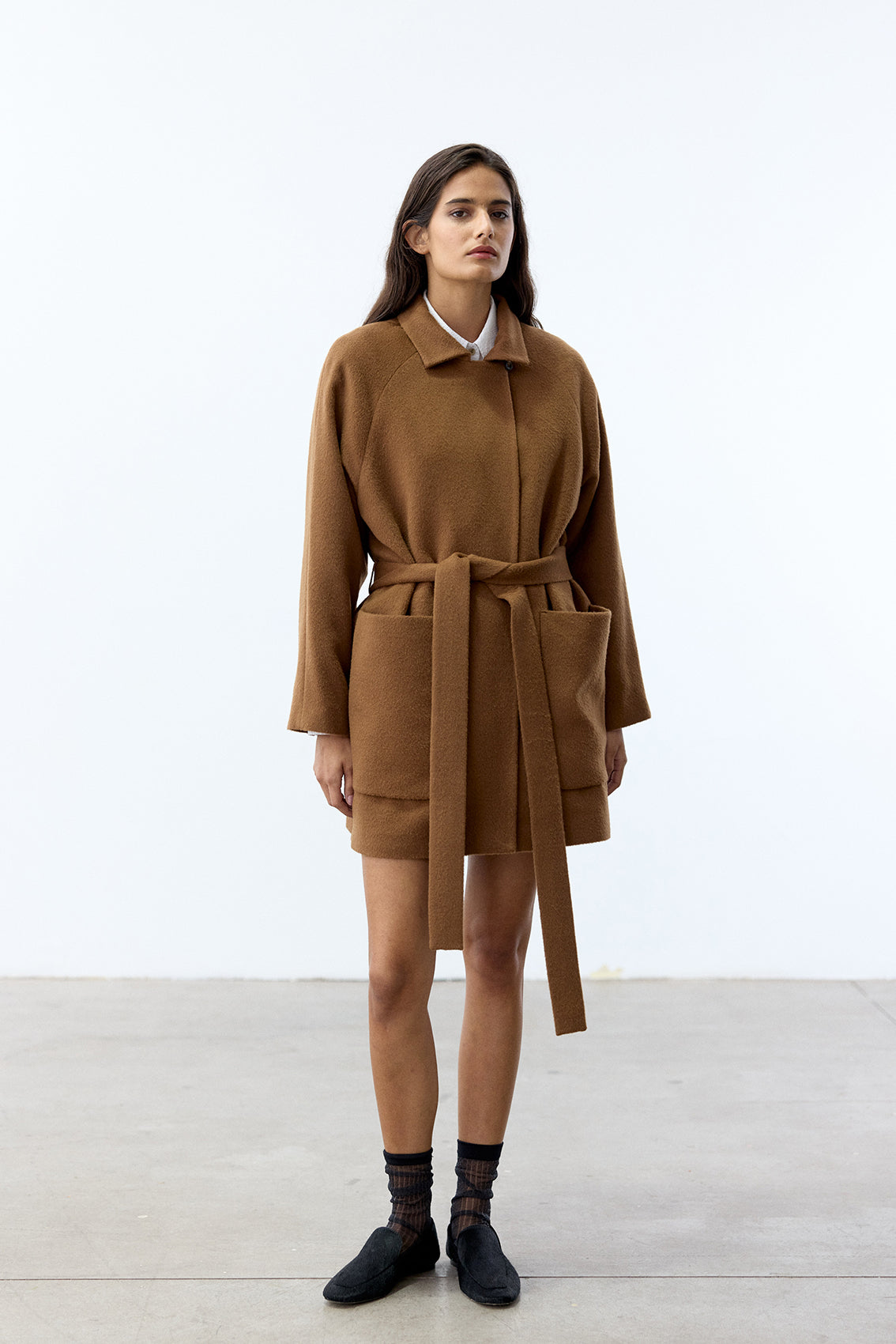Soft baby alpaca coat with a straight and perfectly relaxed silhouette. This shorter coat features an elegant notch collar, raglan sleeves, front pockets, and an optional tie at the waist. Crafted in a baby alpaca and wool blend for a luxuriously comfortable feel. Warm, lightweight, and very soft to the touch, with a brushed finish. Fully lined. A staple piece to wear year after year.