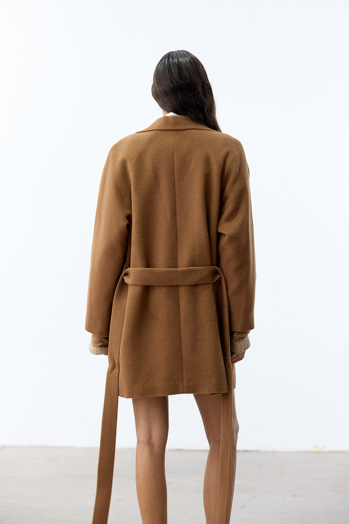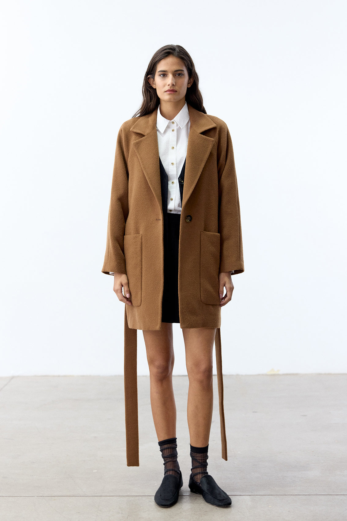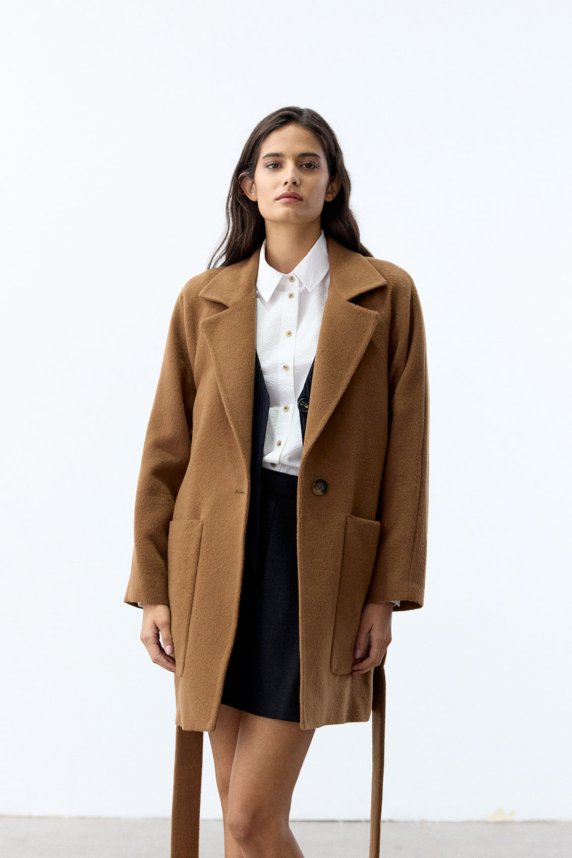 Soft baby alpaca coat with a straight and perfectly relaxed silhouette. This shorter coat features an elegant notch collar, raglan sleeves, front pockets, and an optional tie at the waist. Crafted in a baby alpaca and wool blend for a luxuriously comfortable feel. Warm, lightweight, and very soft to the touch, with a brushed finish. Fully lined. A staple piece to wear year after year.