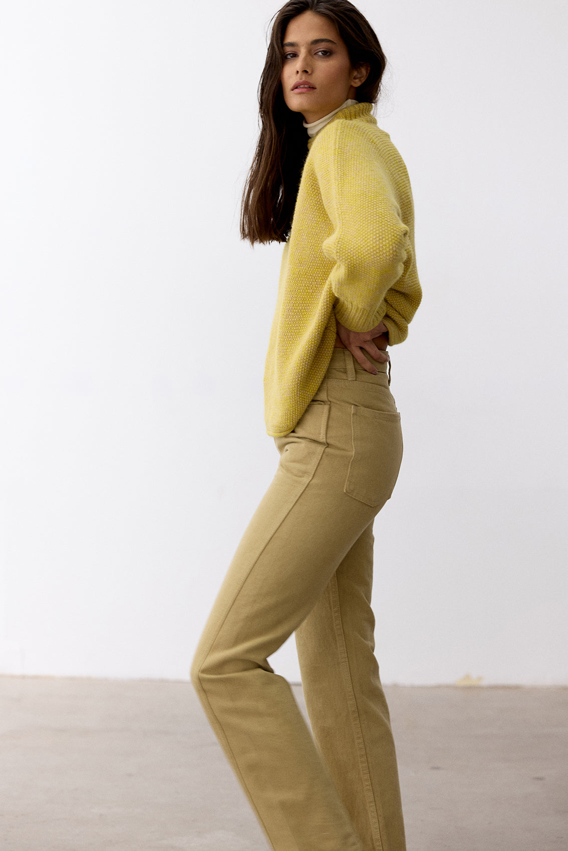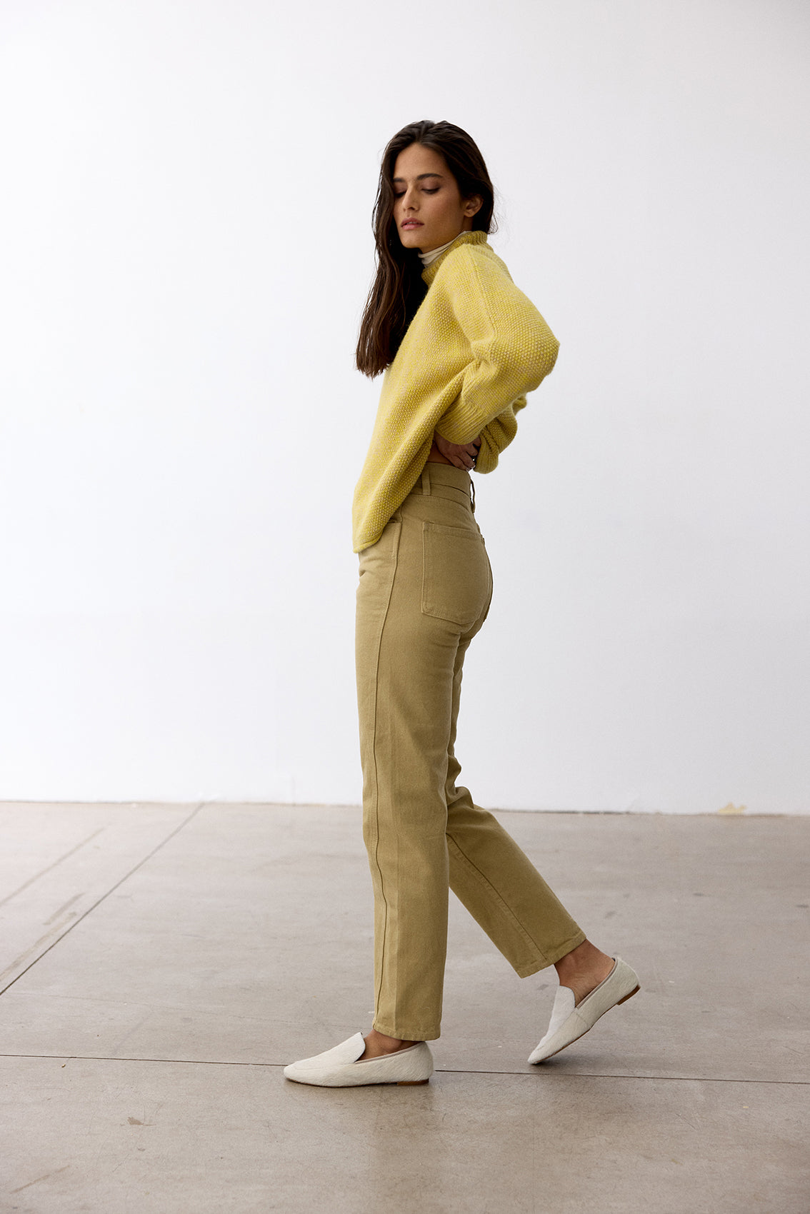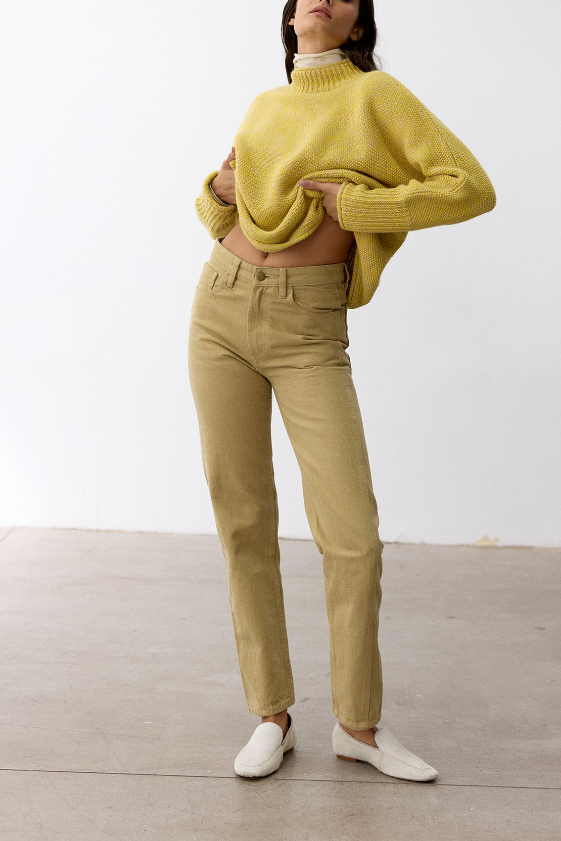 These mid-waist jeans are designed to fit tight around the hips and straight on the legs for a classic silhouette. They feature functional front and back pockets.