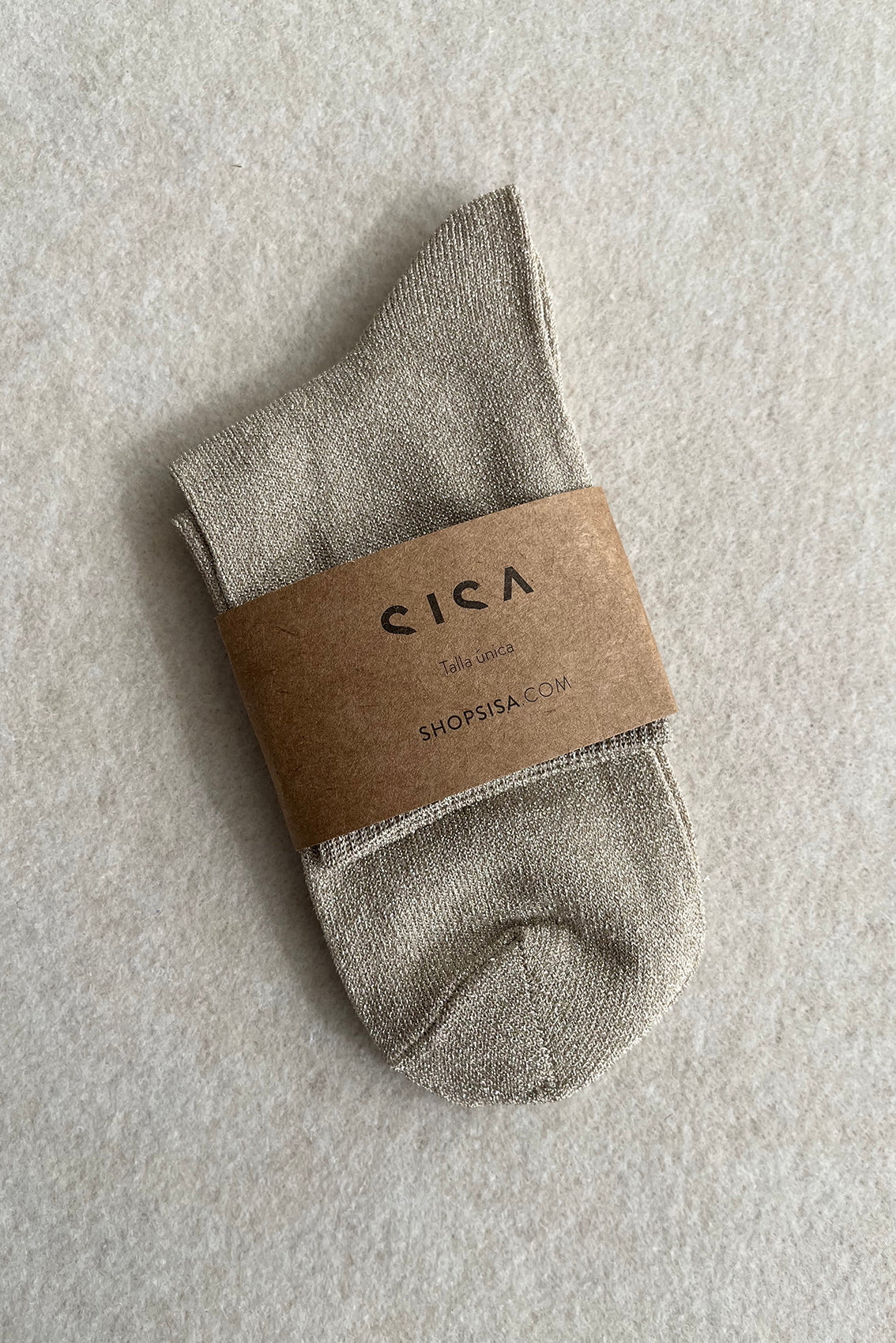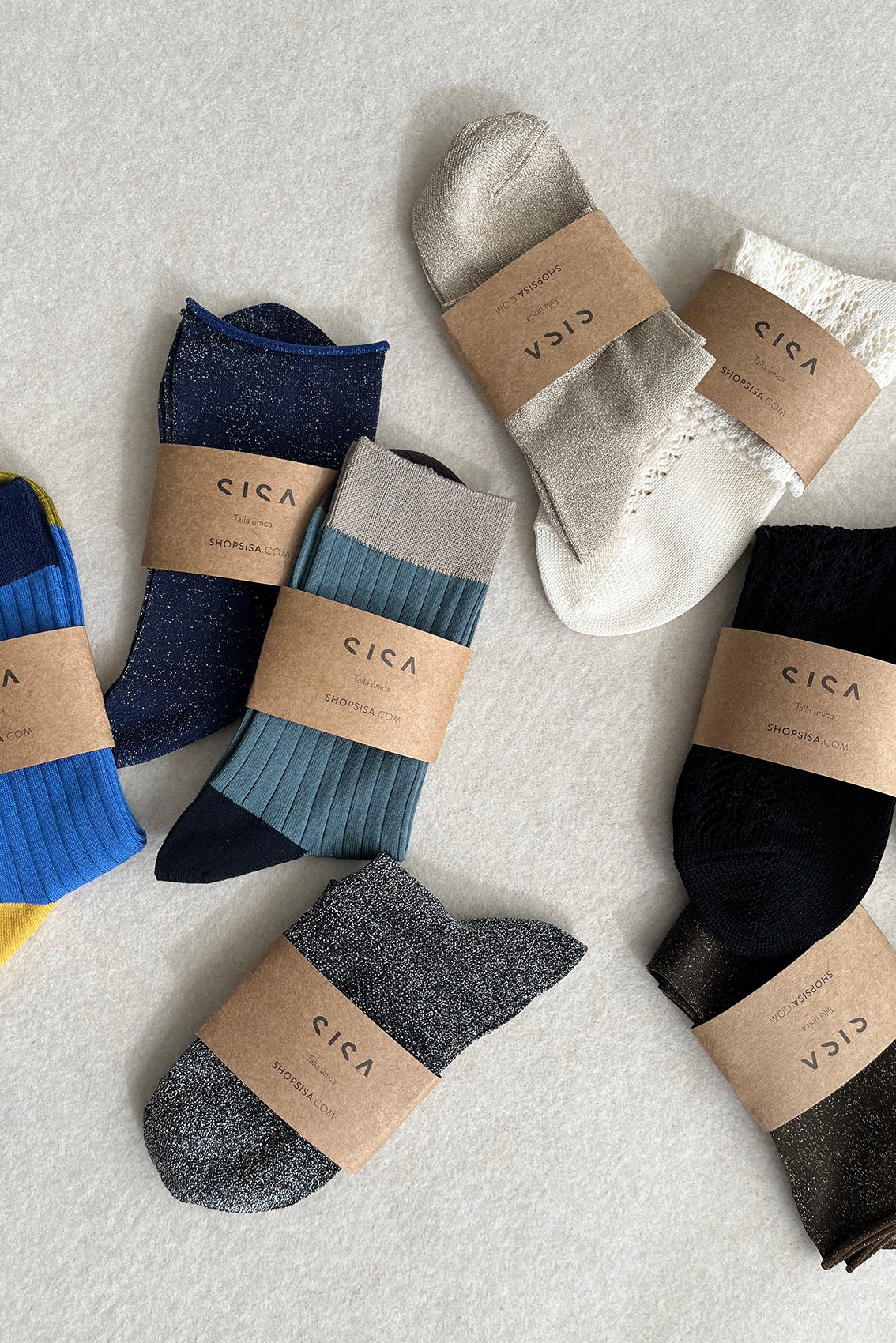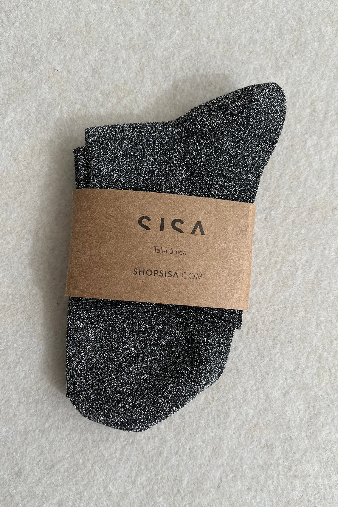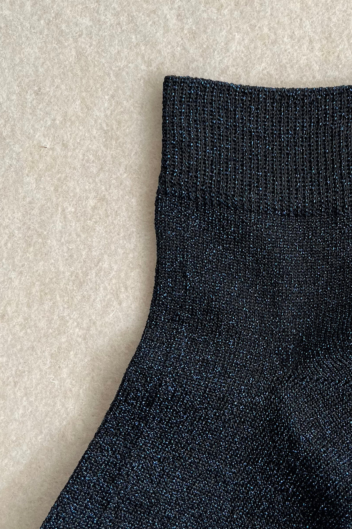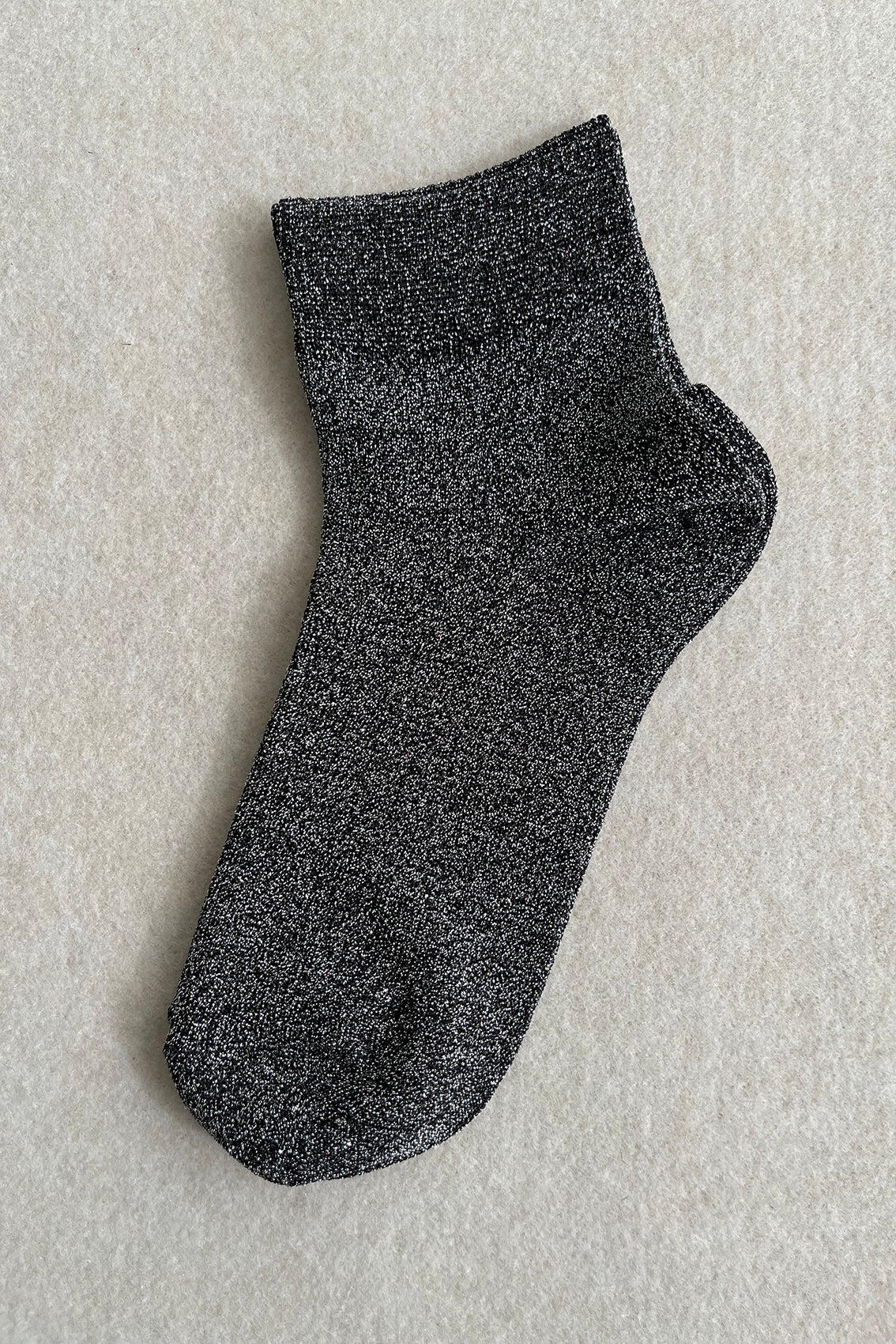 Soft glitter socks crafted in Japan, woven with a subtle glitter thread that provides a stylish shimmer without compromising softness.