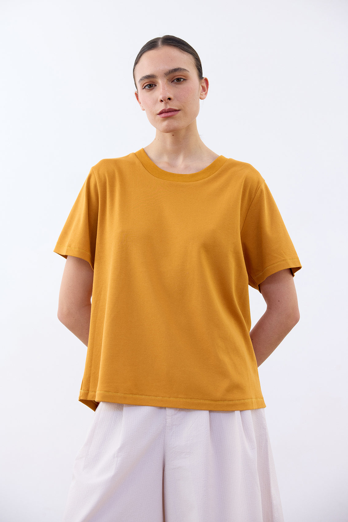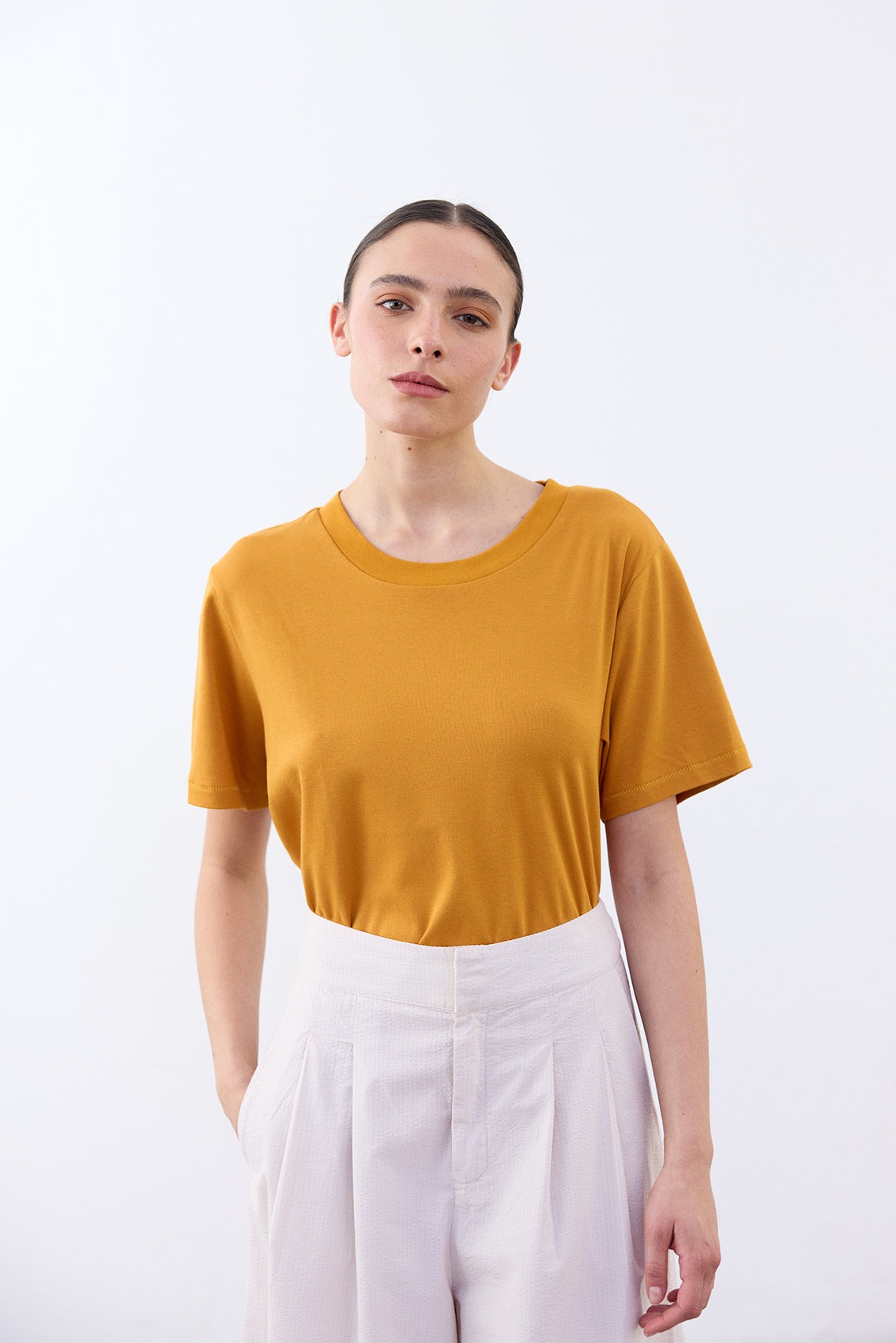 Basic Crew Neck Pima Cotton T-Shirt - Cúrcuma