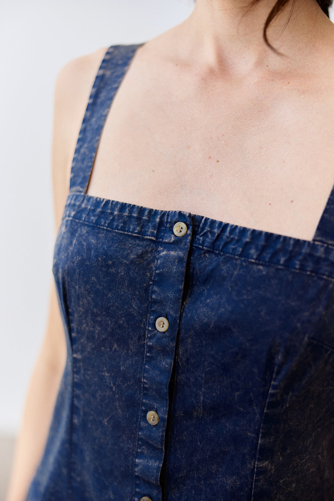 Buttoned Sleeveless Cotton Dress - Piedra Washed
