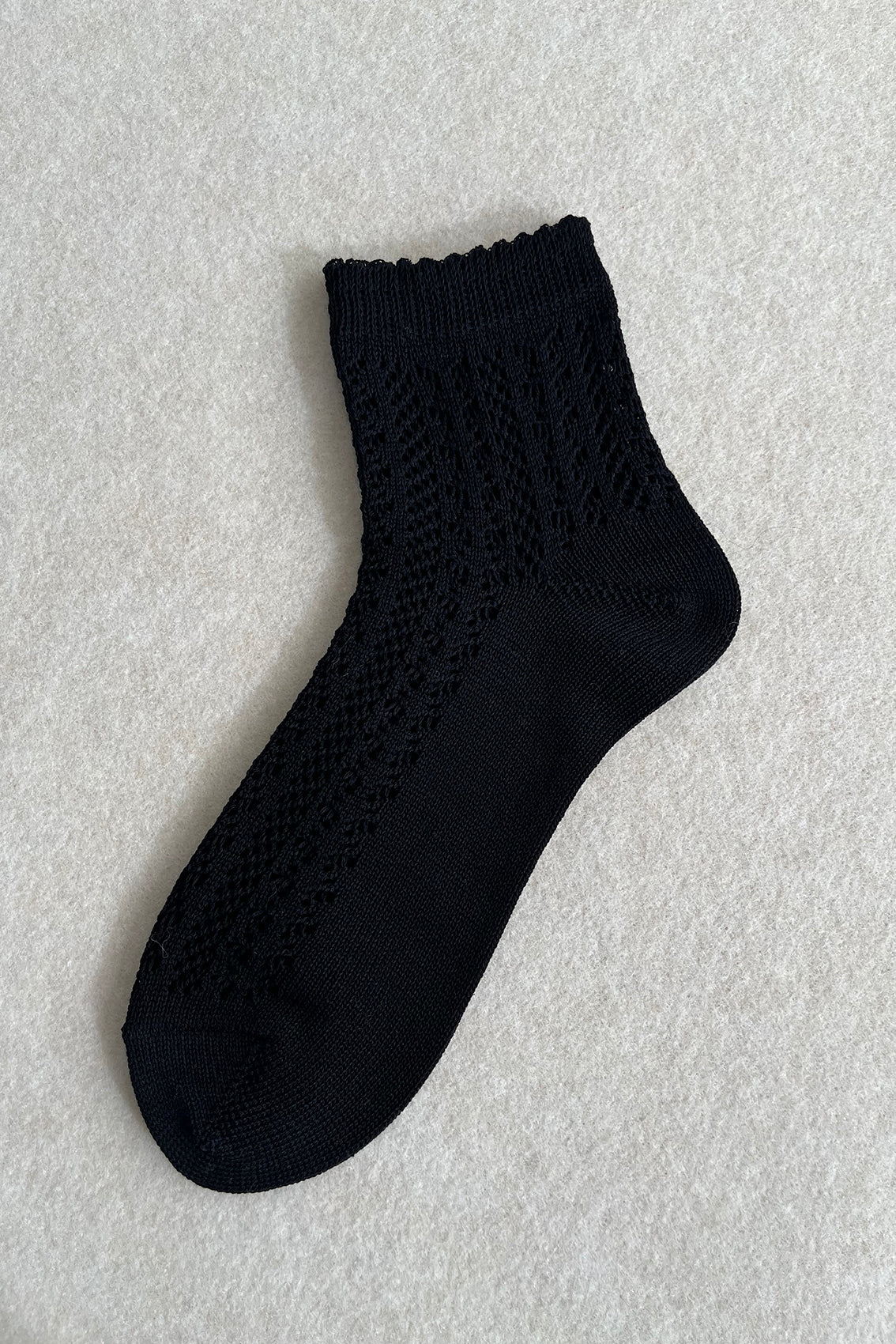 Mesh cotton socks crafted in Japan from a high-quality cotton blend that is soft to the touch. Reinforced heel and toe areas to enhance durability.