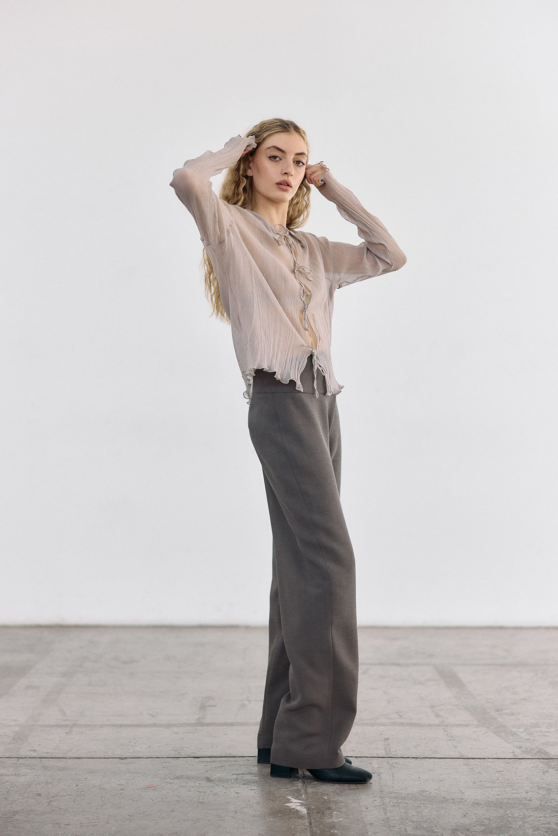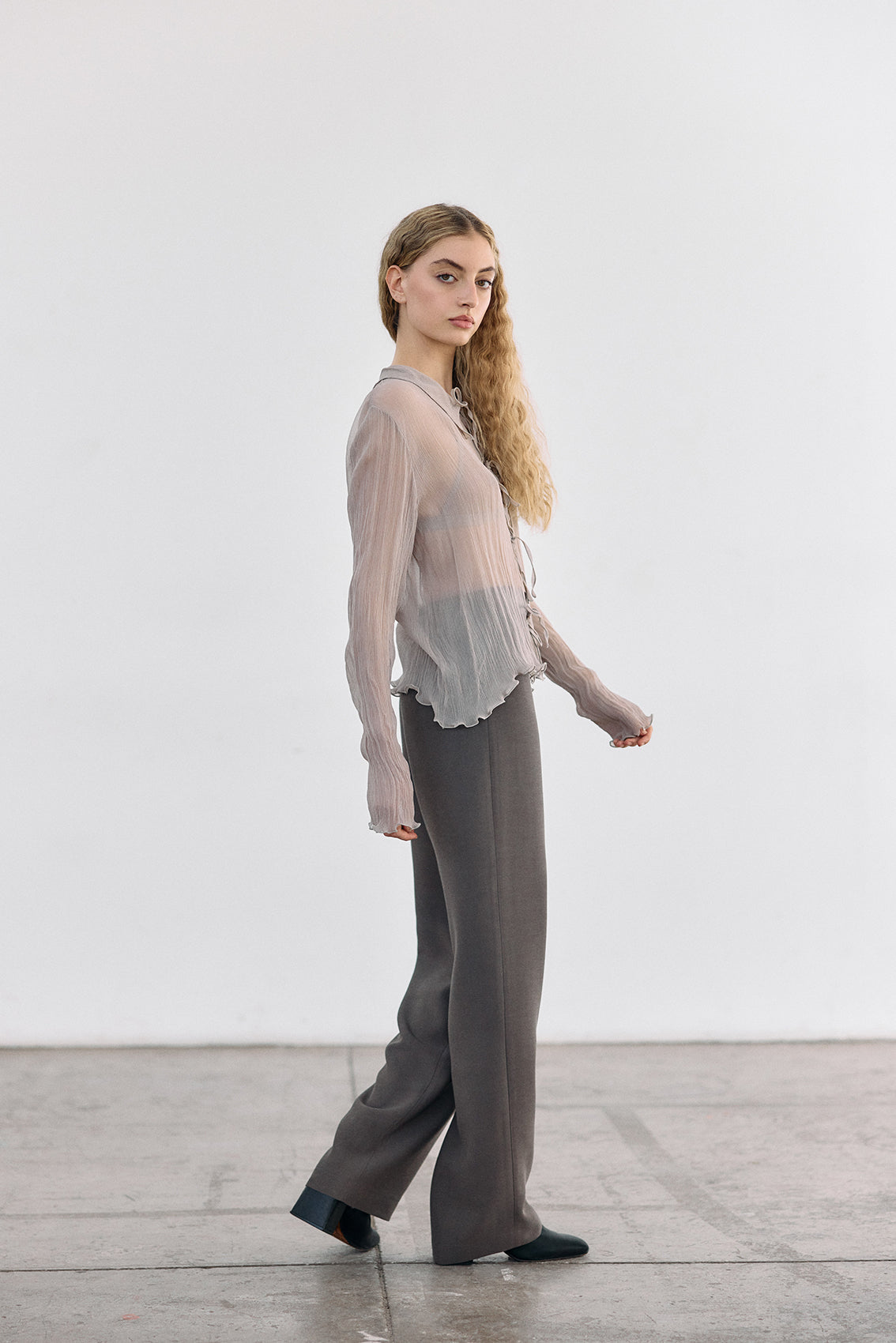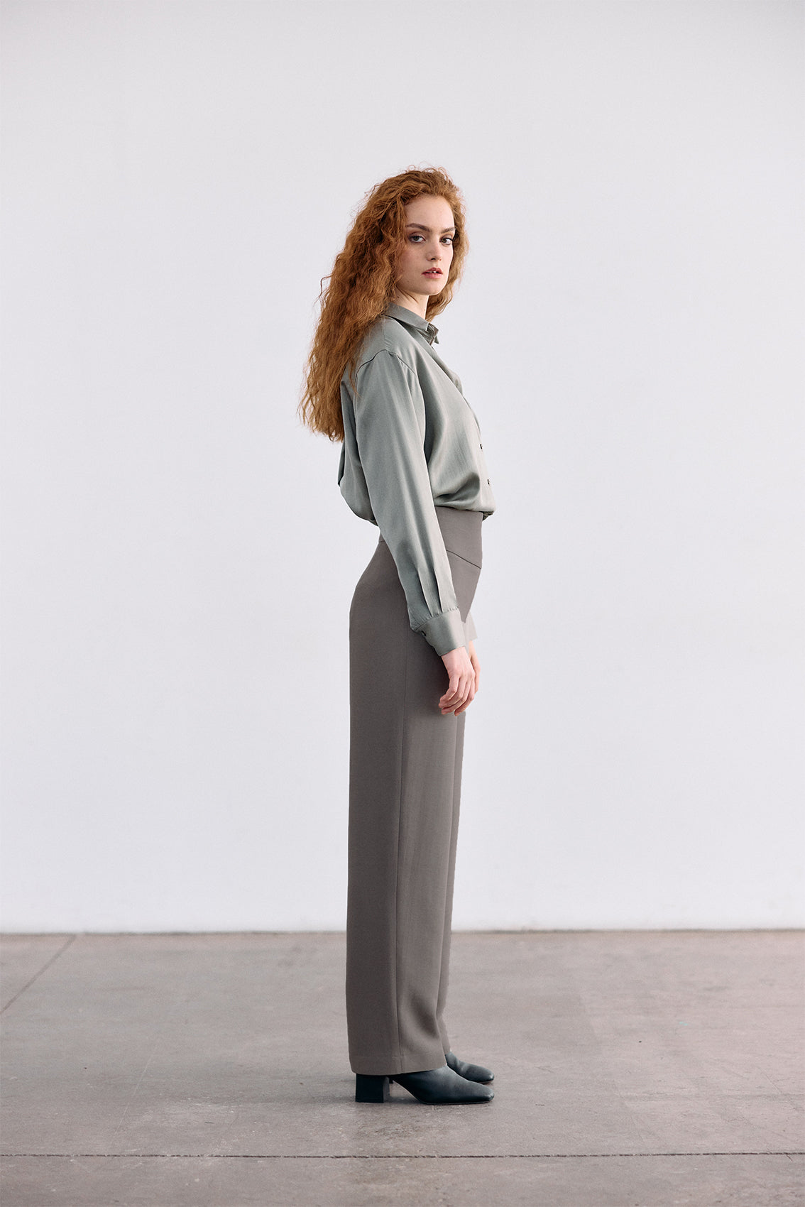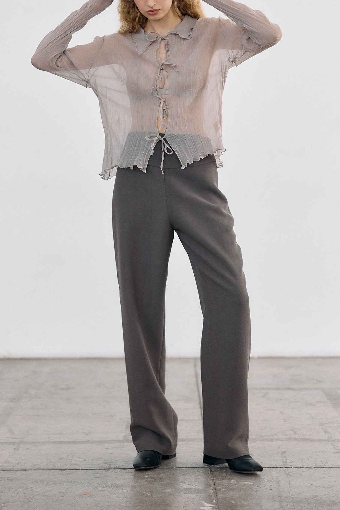 Elevated straight-fit trousers crafted in an Italian viscose and wool blend fabric. With a back zipper closure.