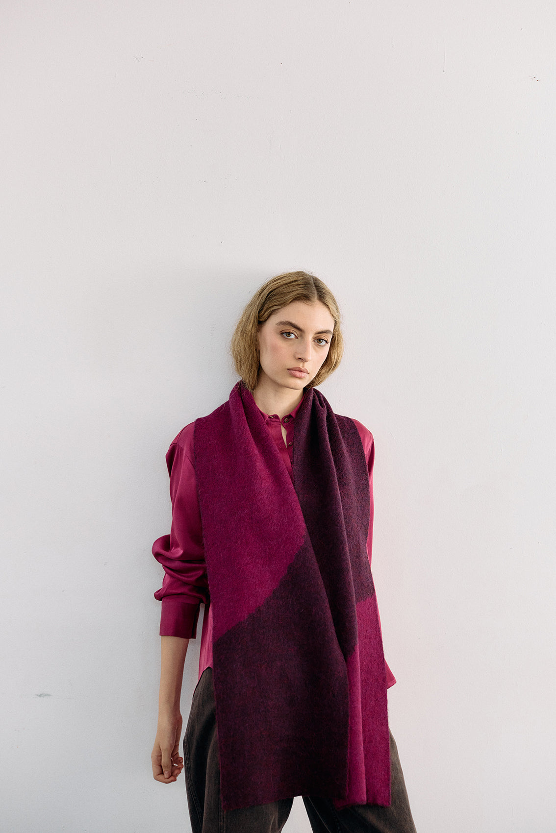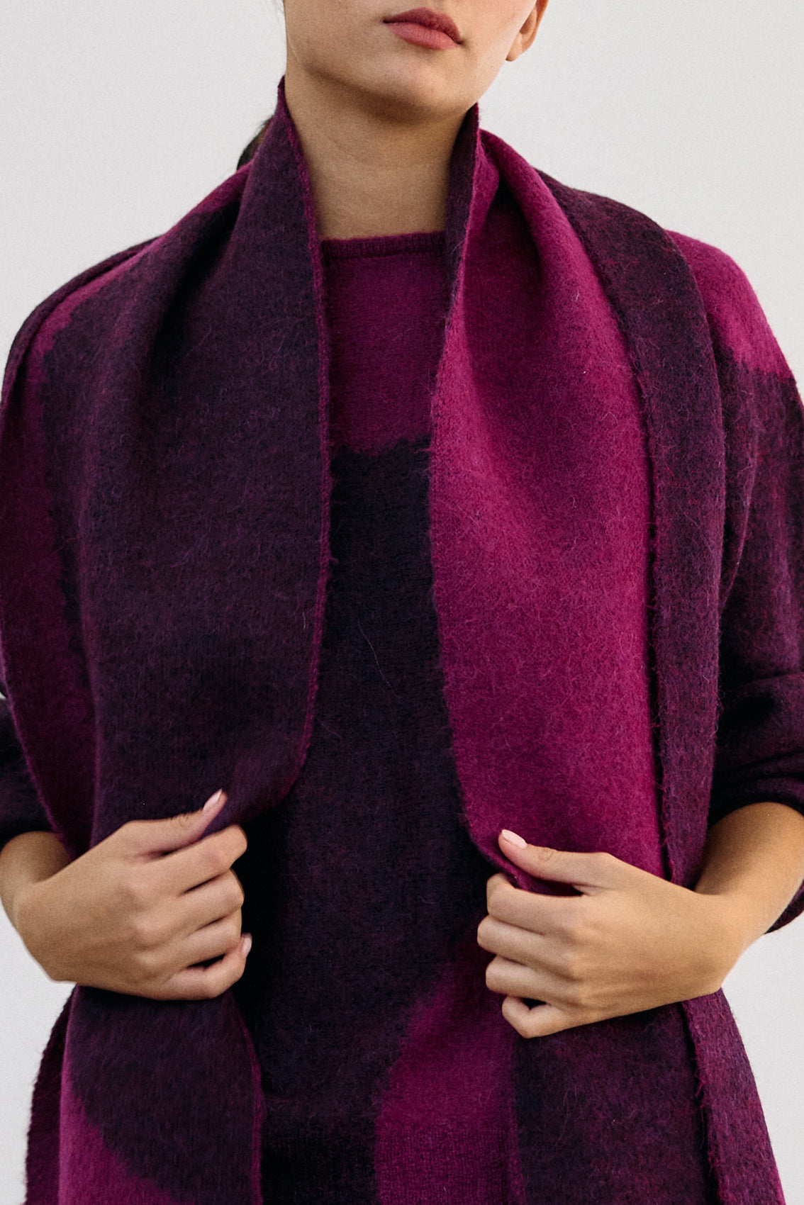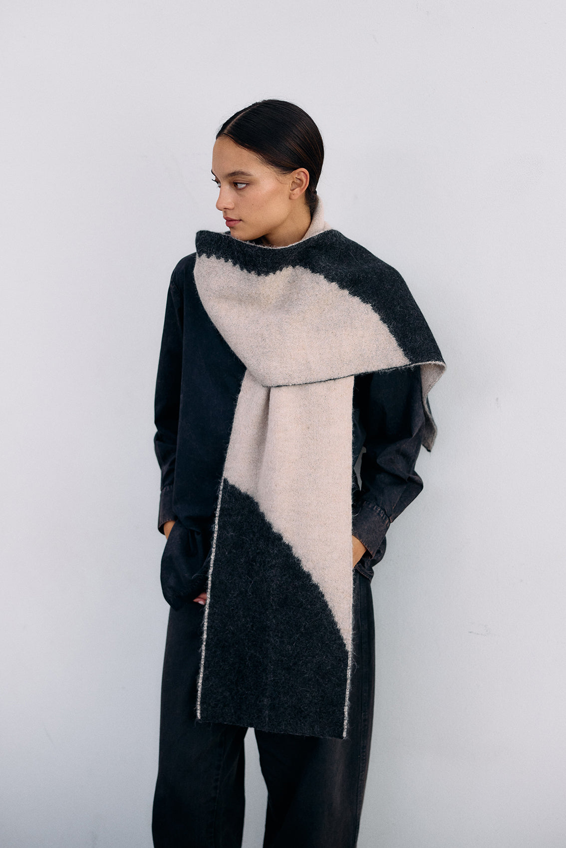 Unique scarf crafted in super soft 100% alpaca. It has been treated with a special felting process (professionally boiled in hot water and dried on high heat). The result is a thick but fluffy knit with an airy, cloud-like texture.