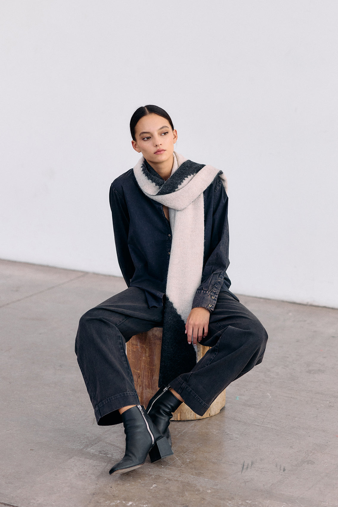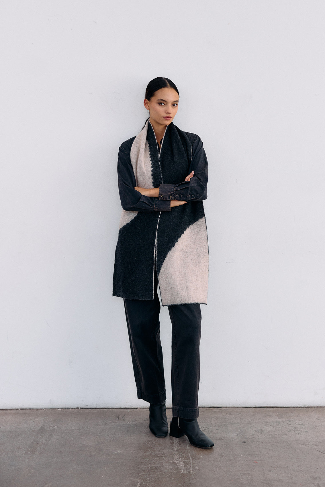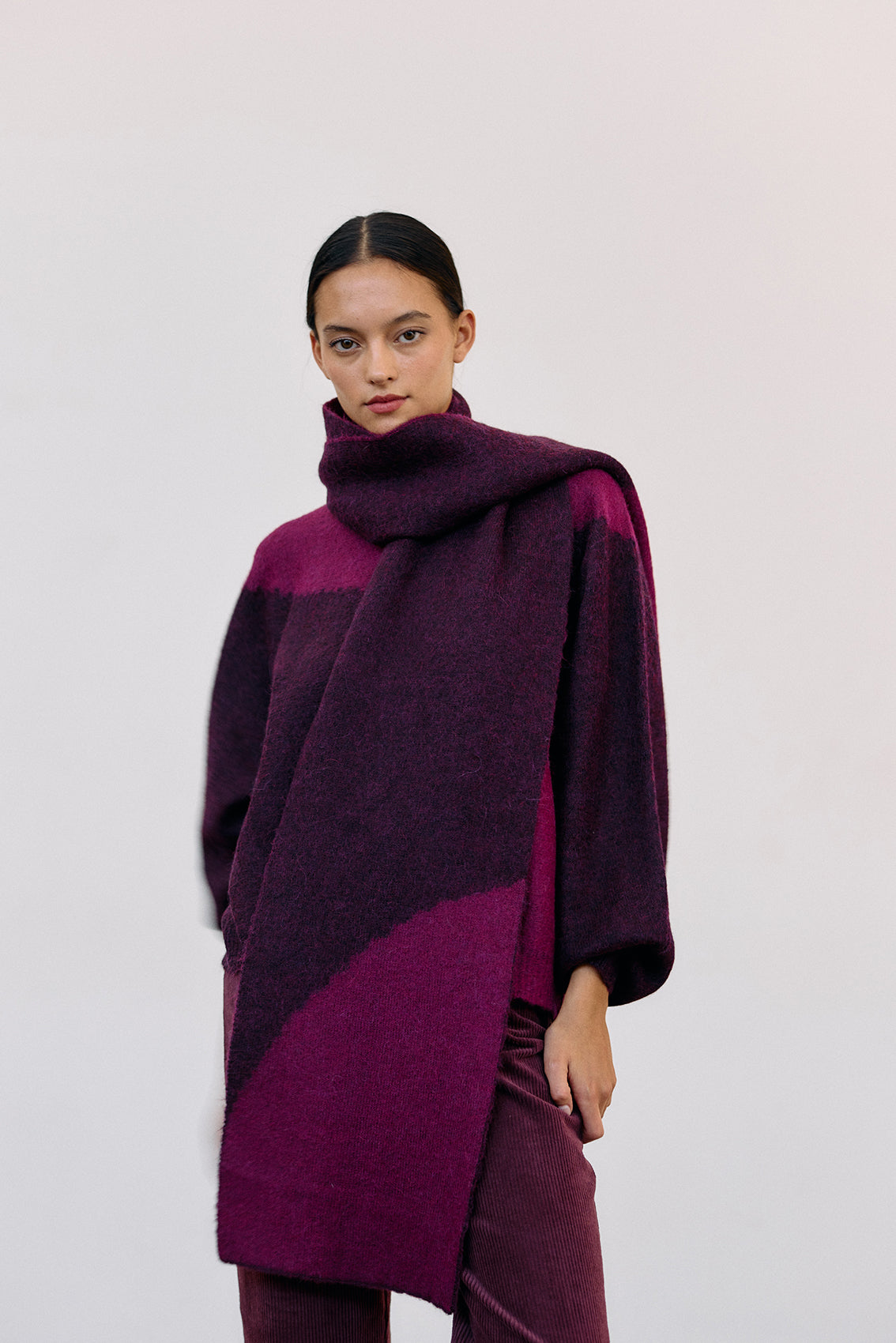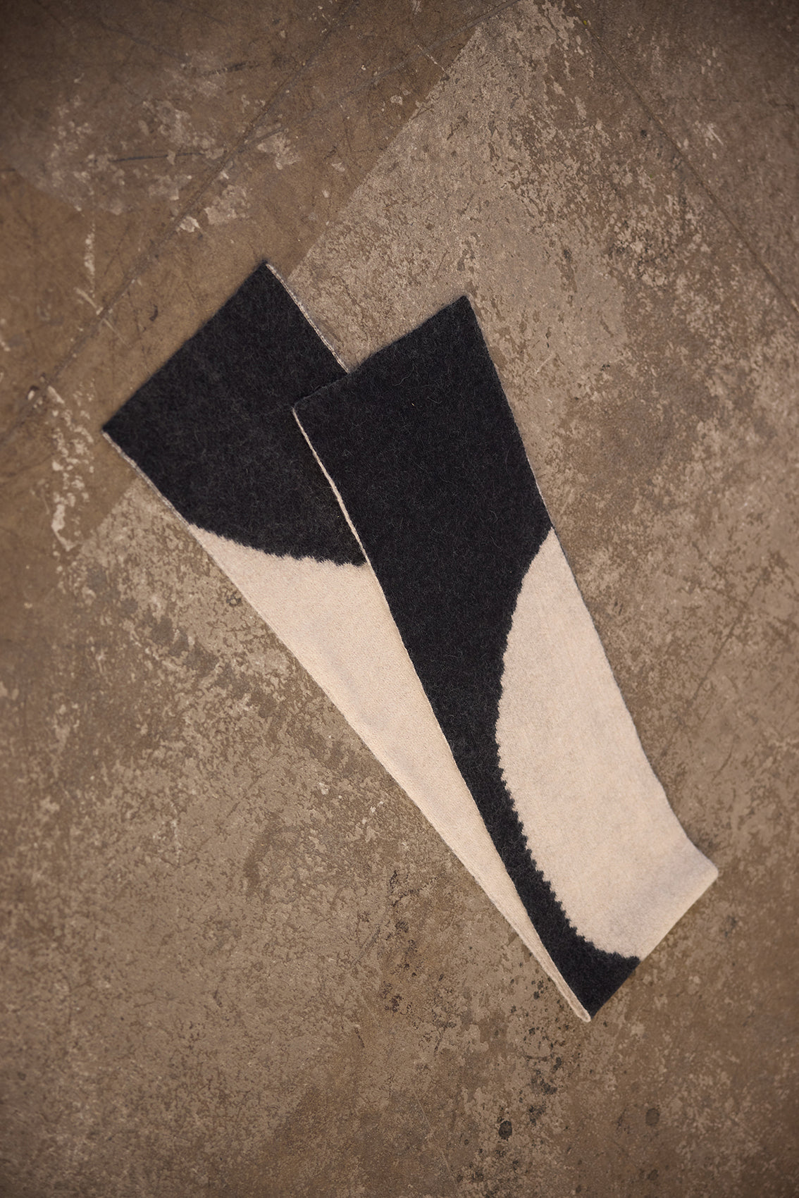 Unique scarf crafted in super soft 100% alpaca. It has been treated with a special felting process (professionally boiled in hot water and dried on high heat). The result is a thick but fluffy knit with an airy, cloud-like texture.