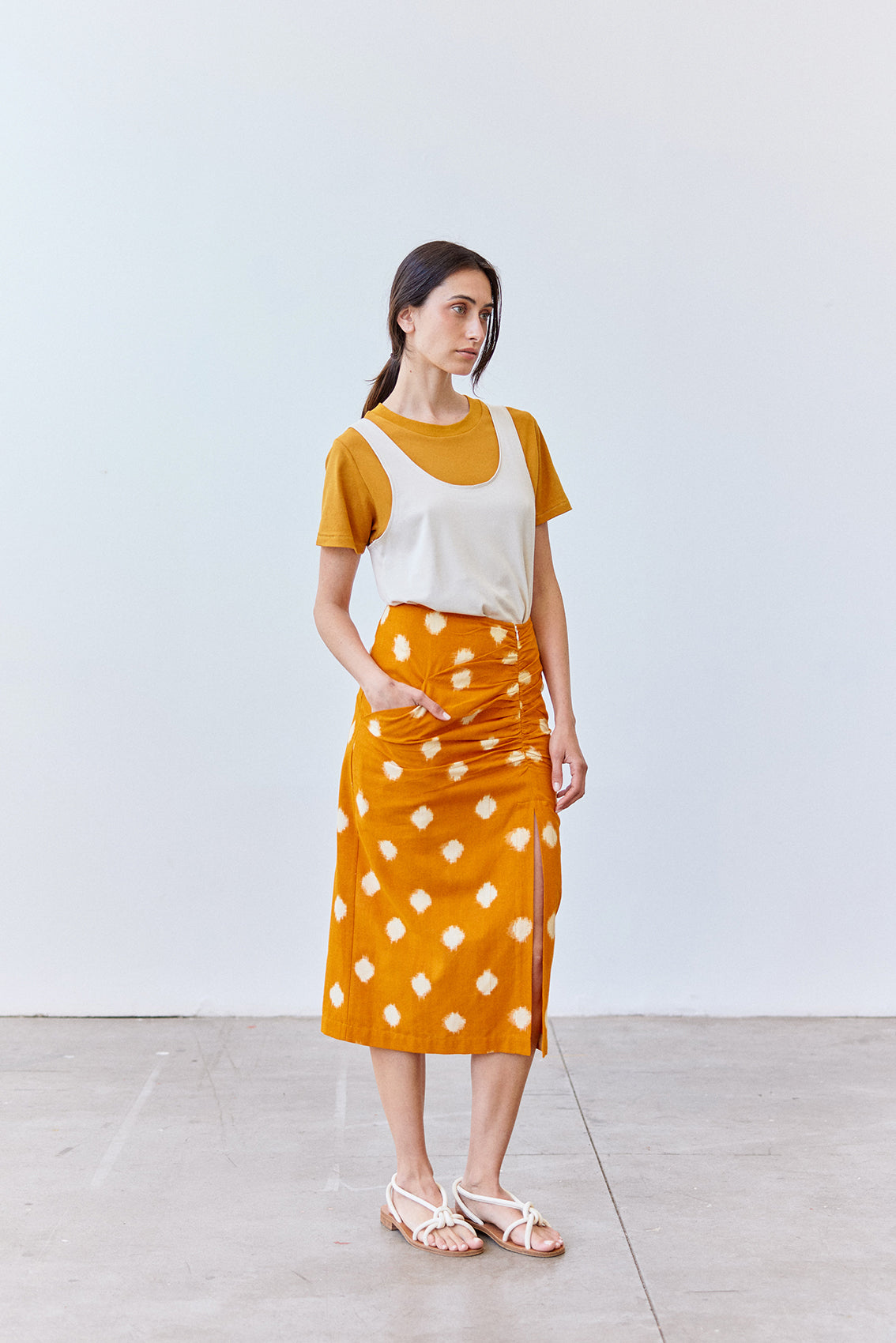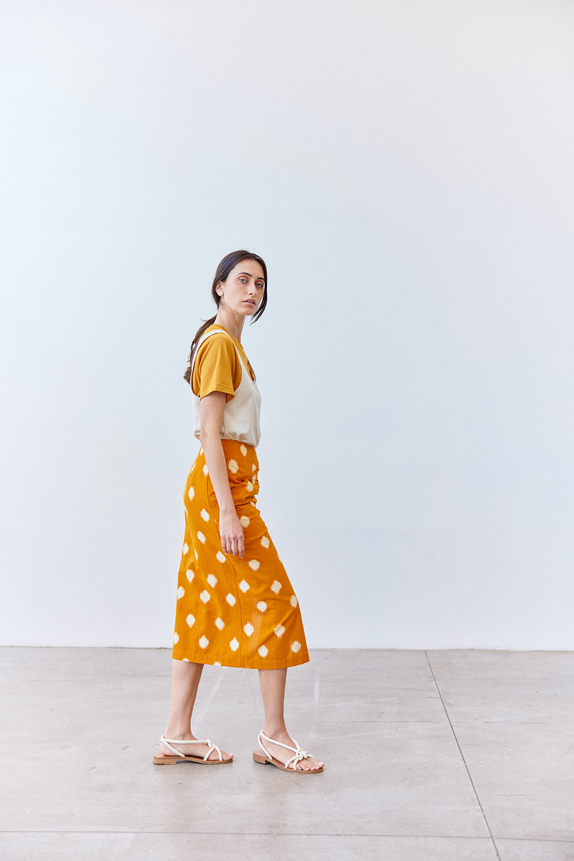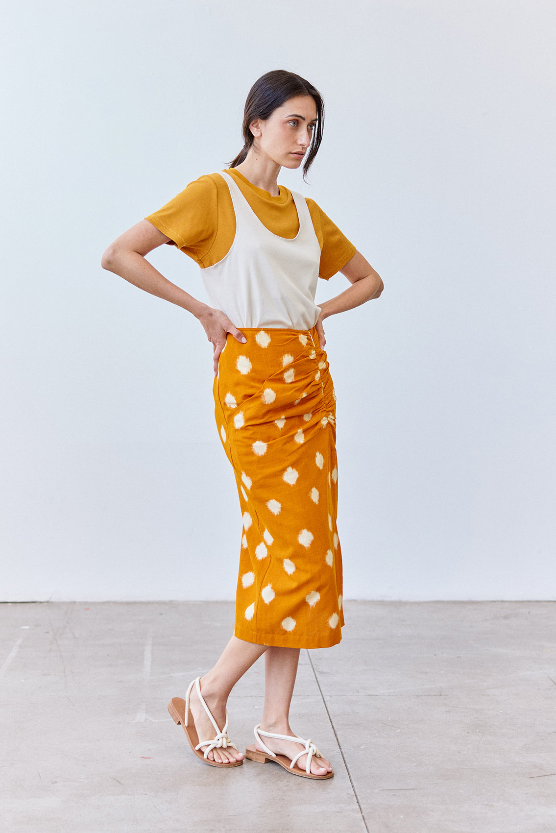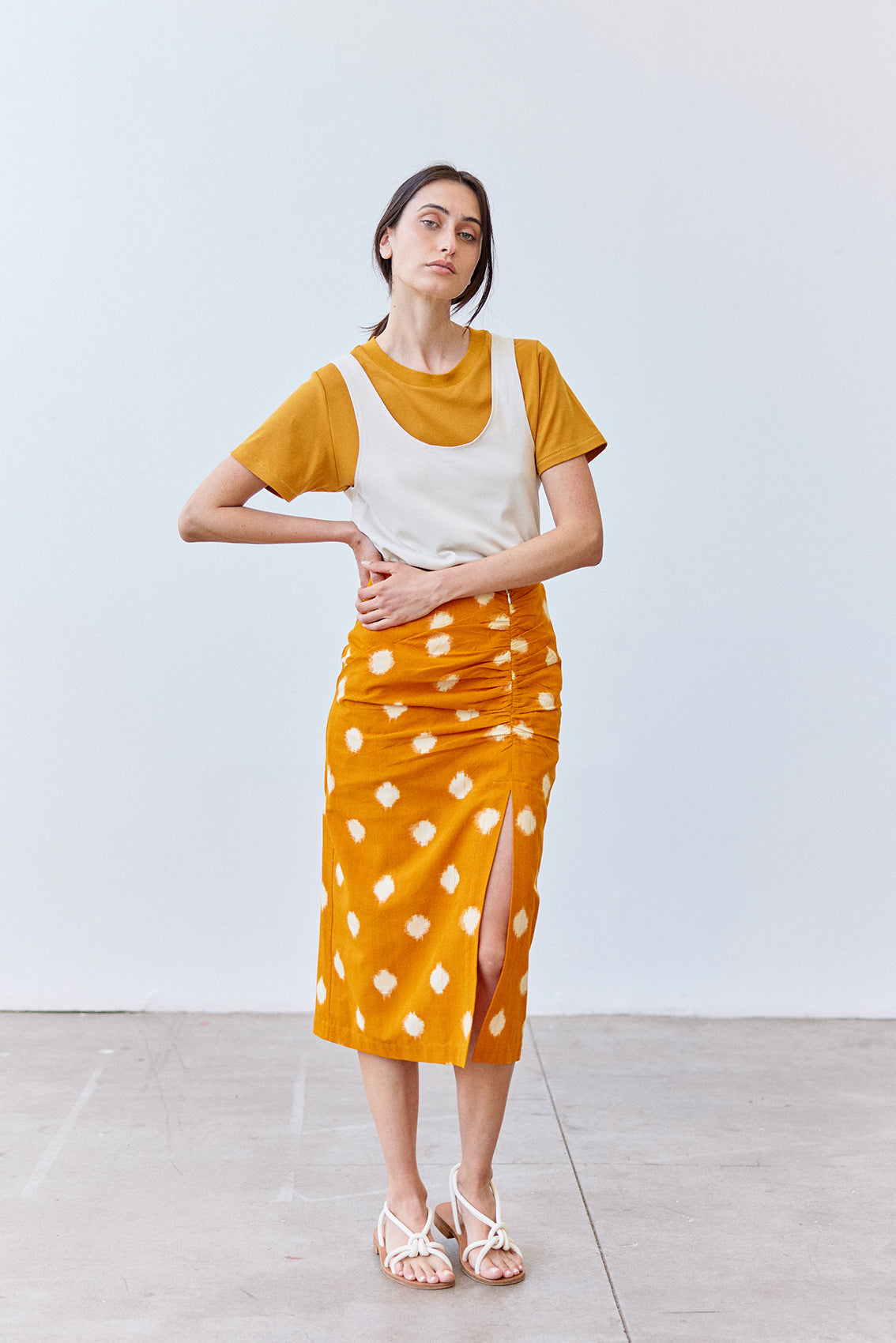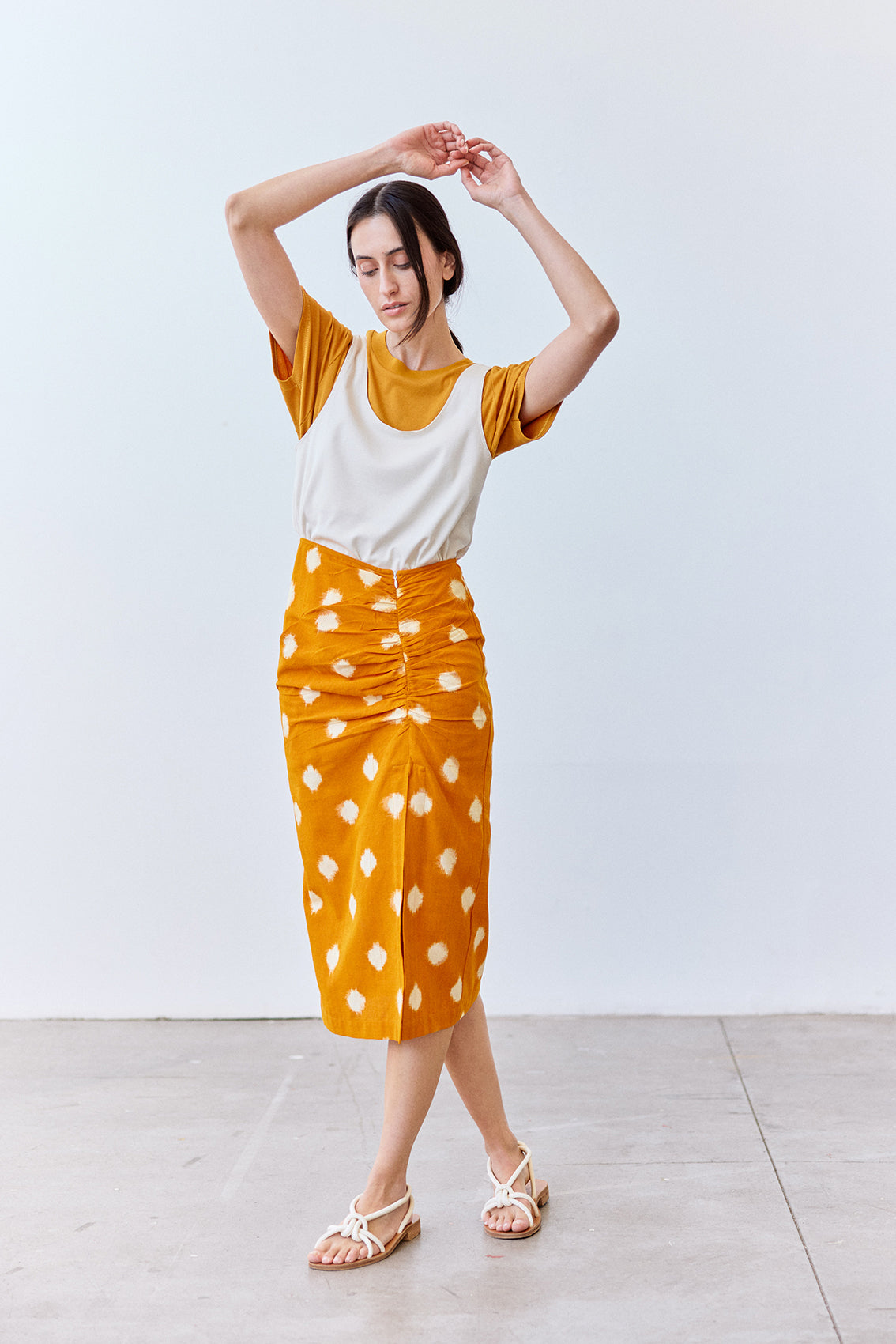 Gathered Pencil Skirt Ikat Cotton - Cúrcuma