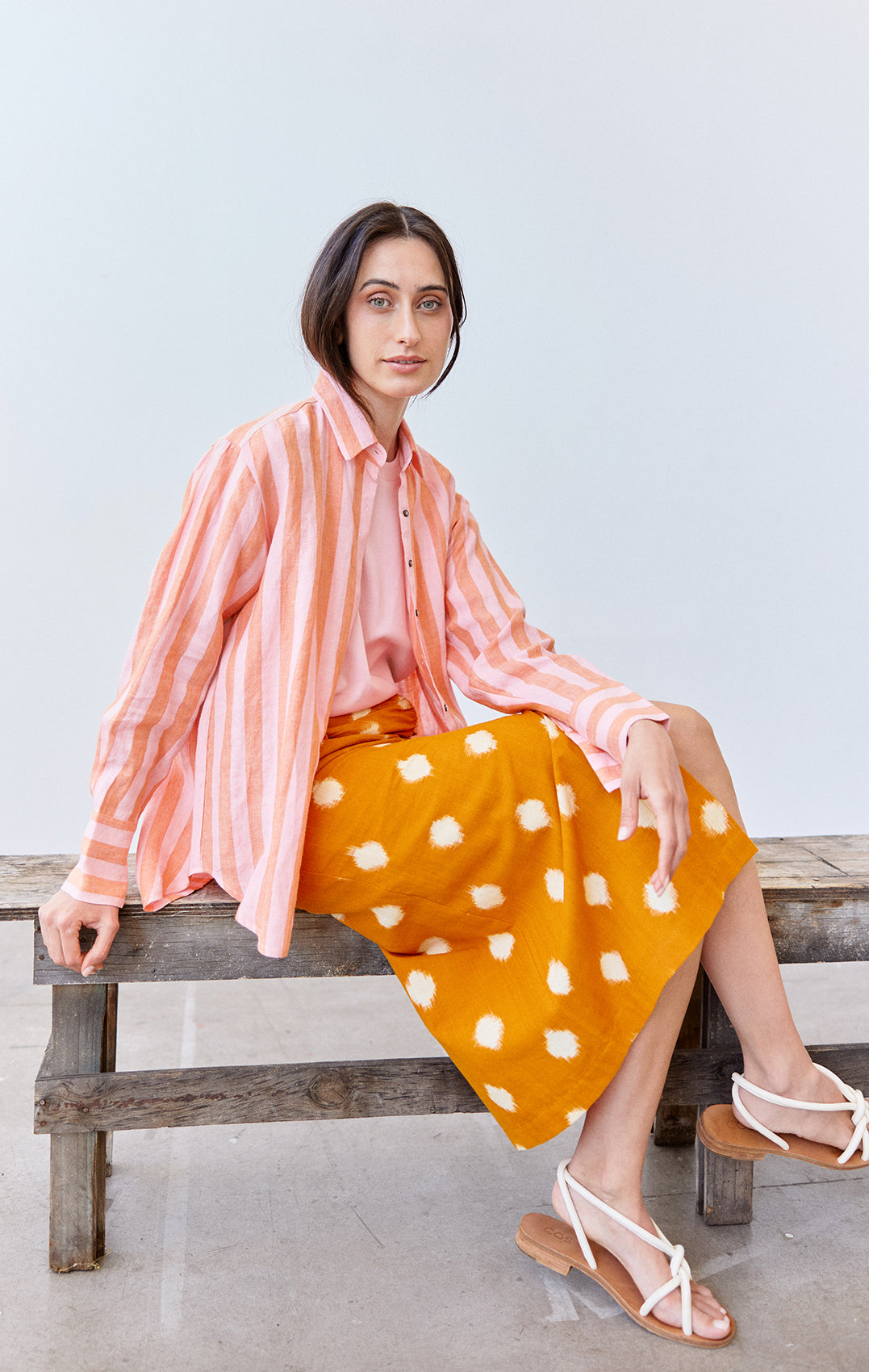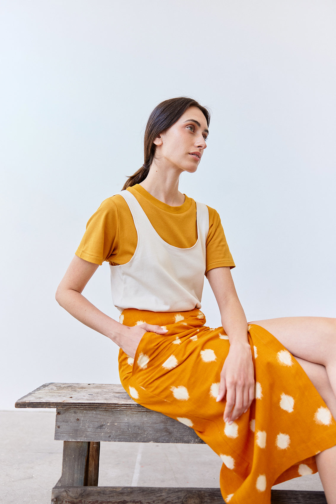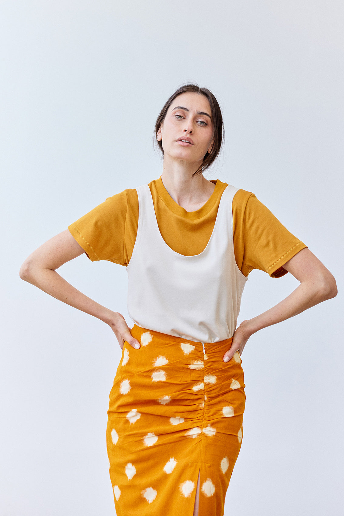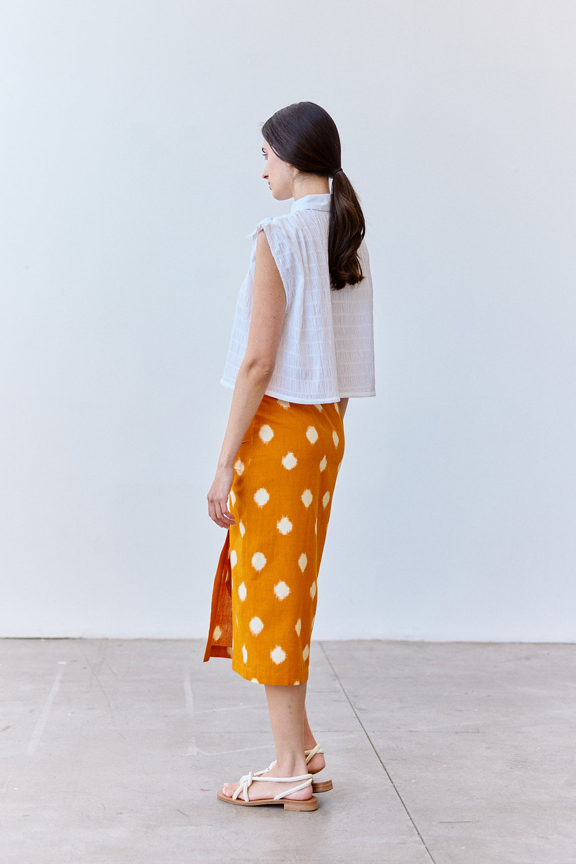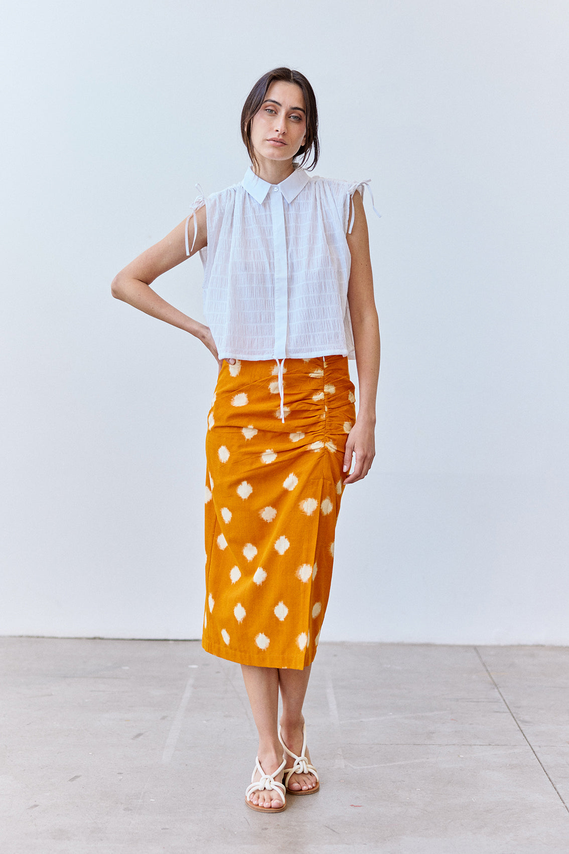 Gathered Pencil Skirt Ikat Cotton - Cúrcuma