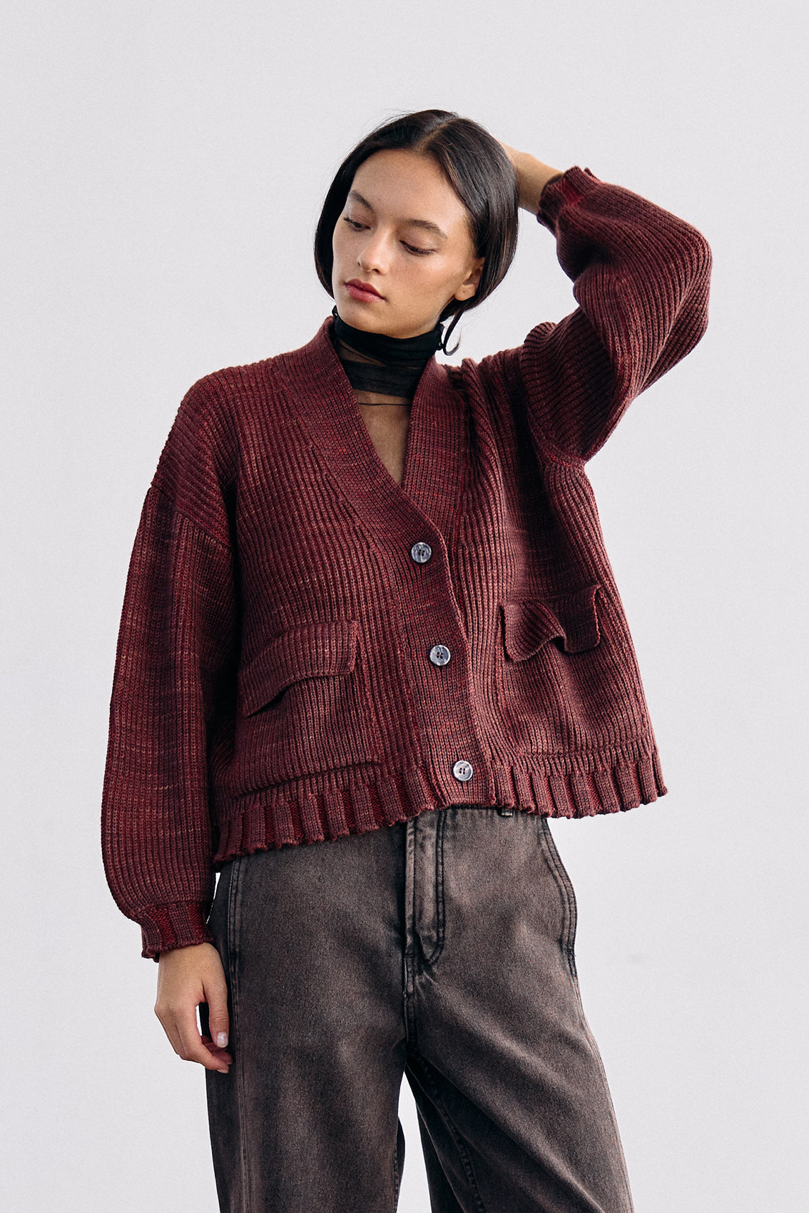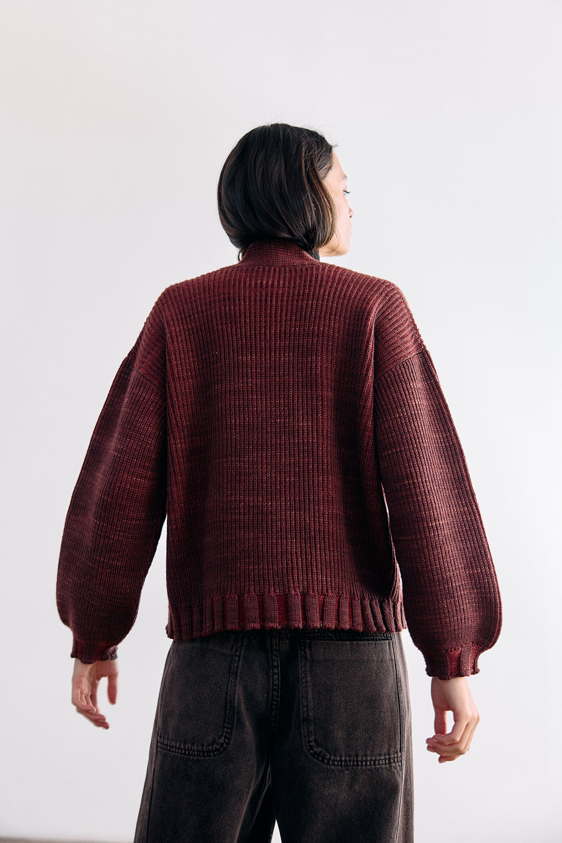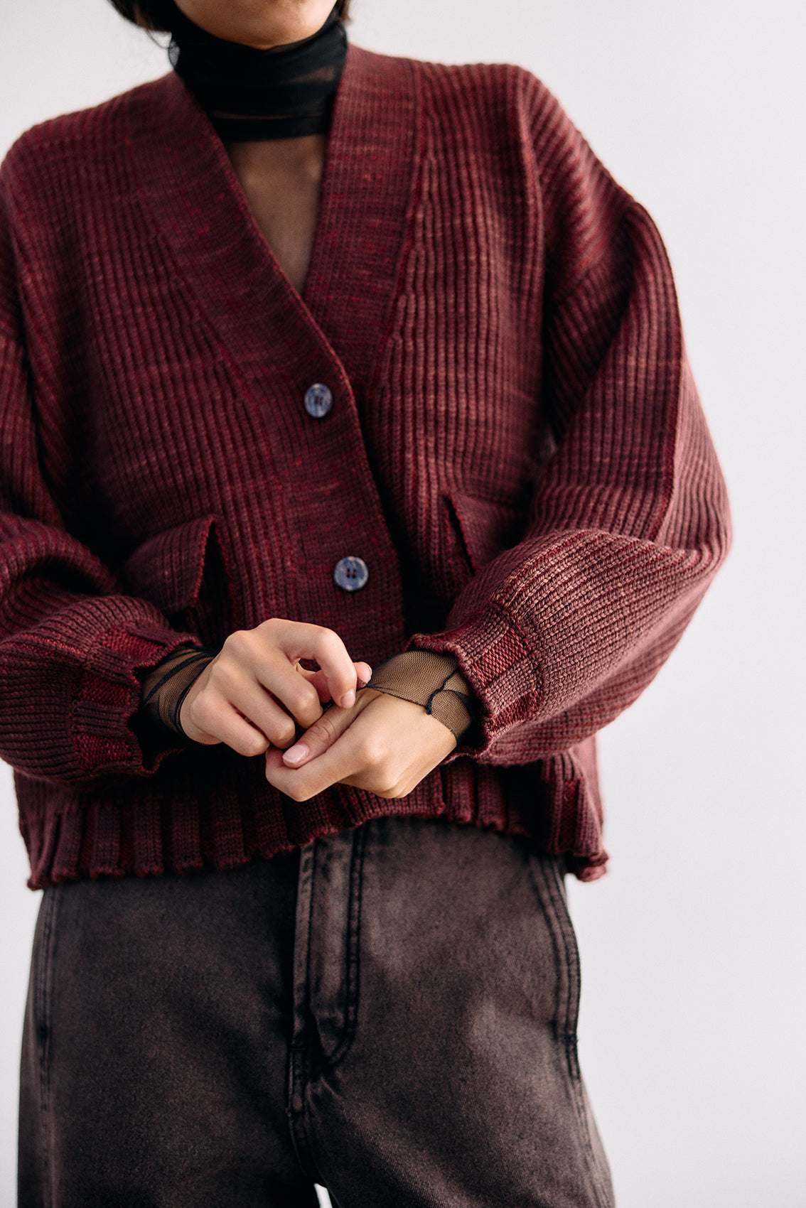 Hand-Dyed Contrast Merino Wool Cardigan - Mix Vino