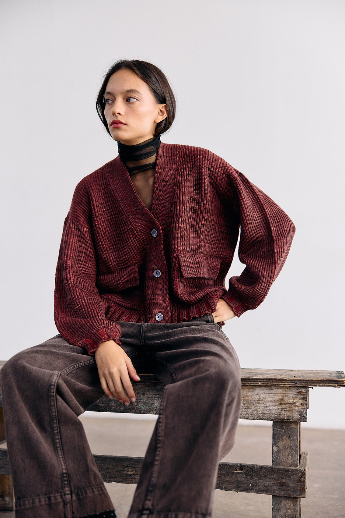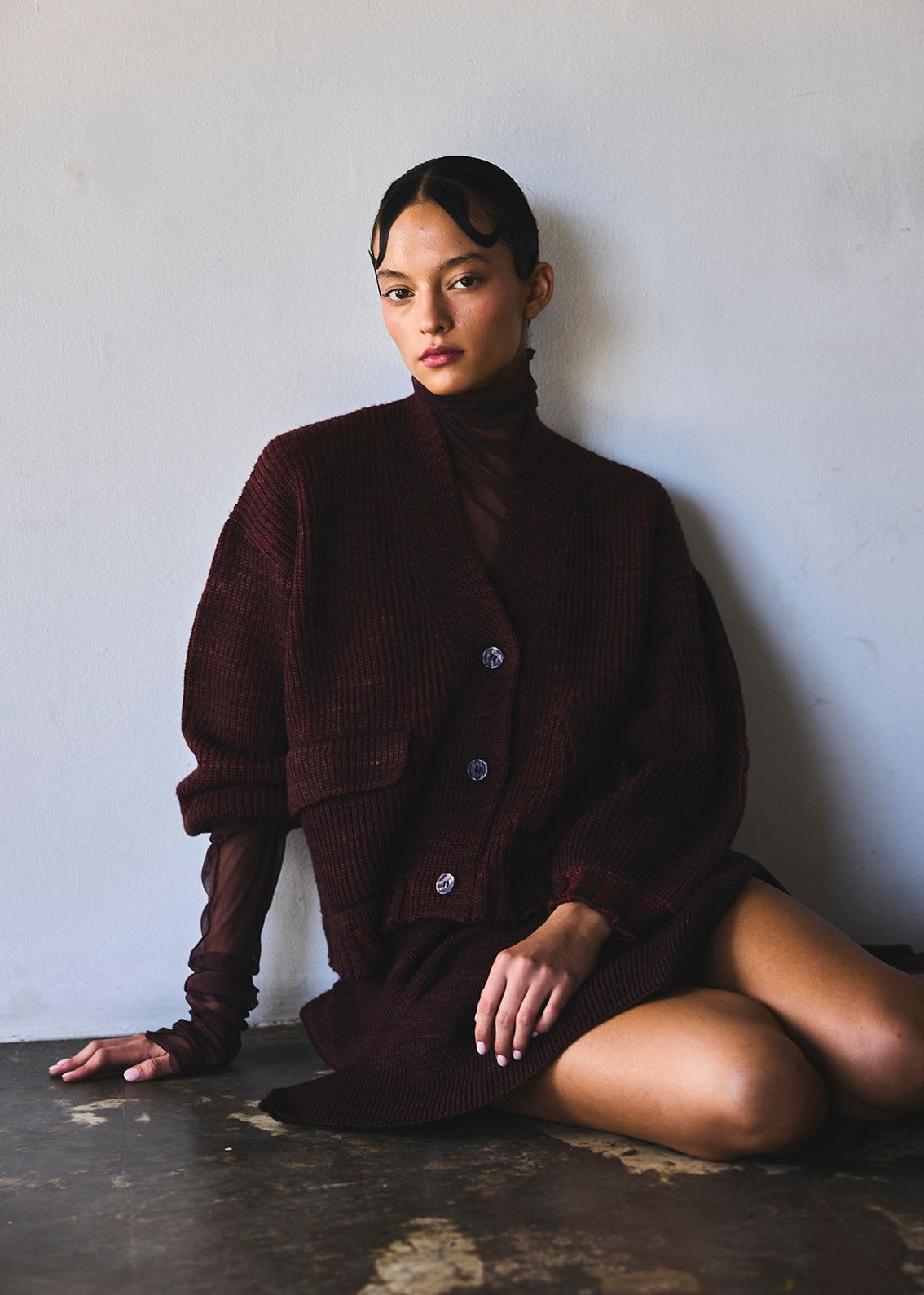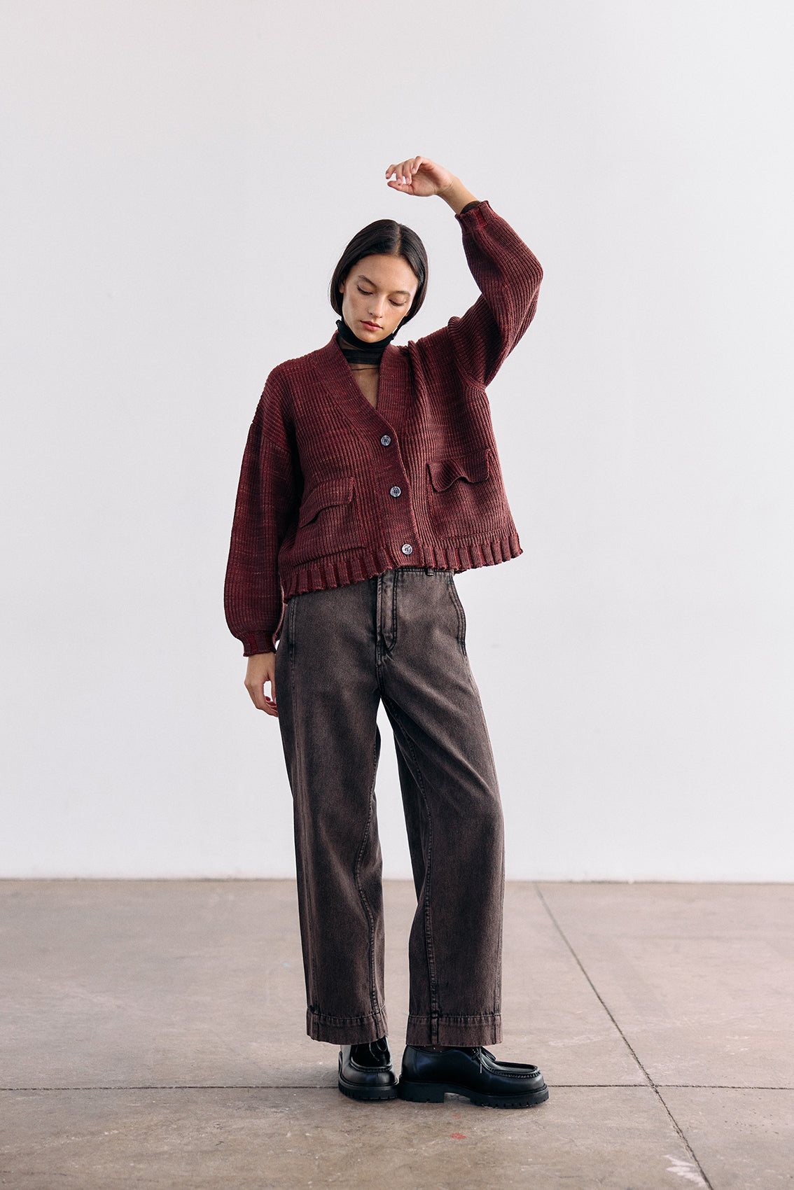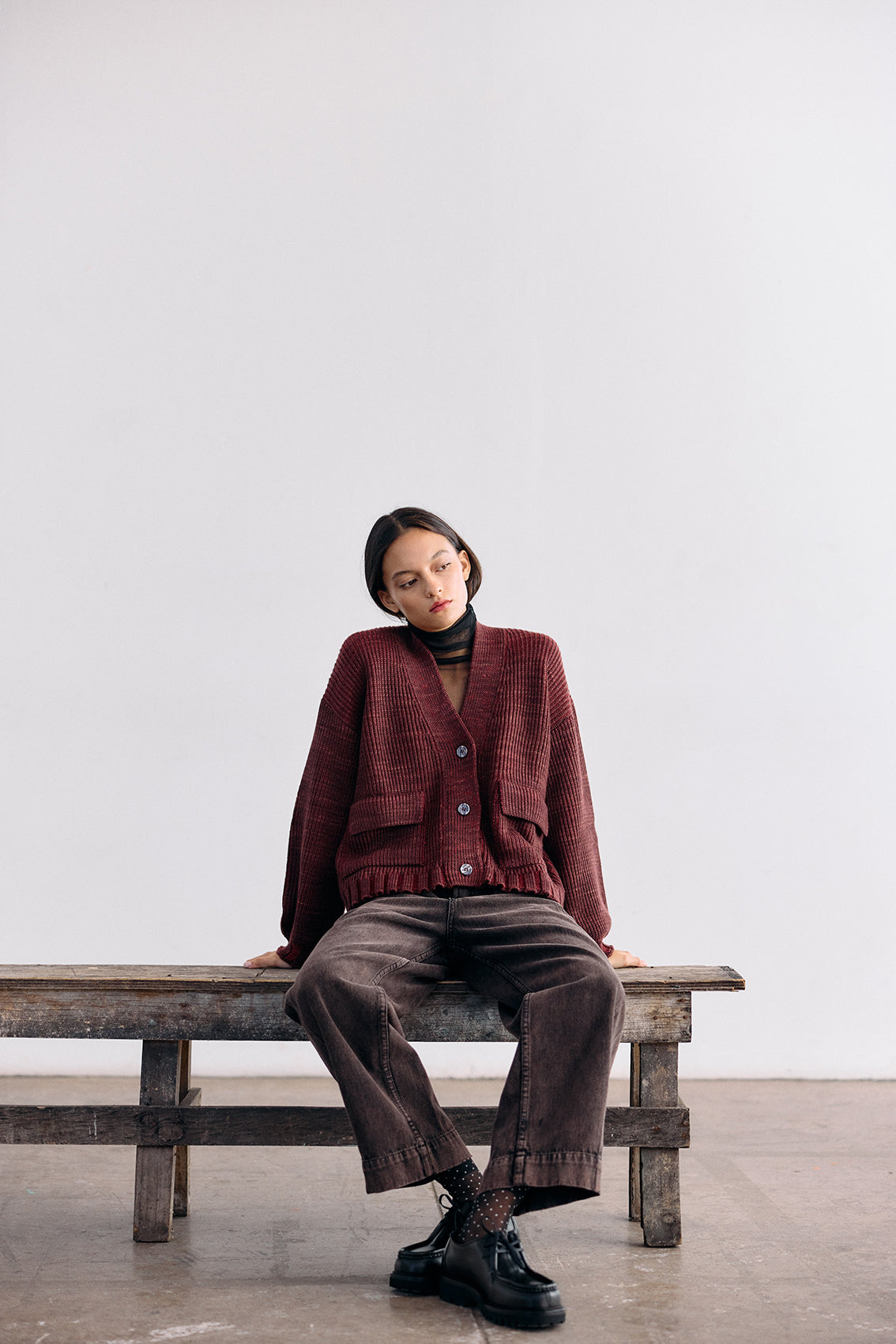 Hand-Dyed Contrast Merino Wool Cardigan - Mix Vino