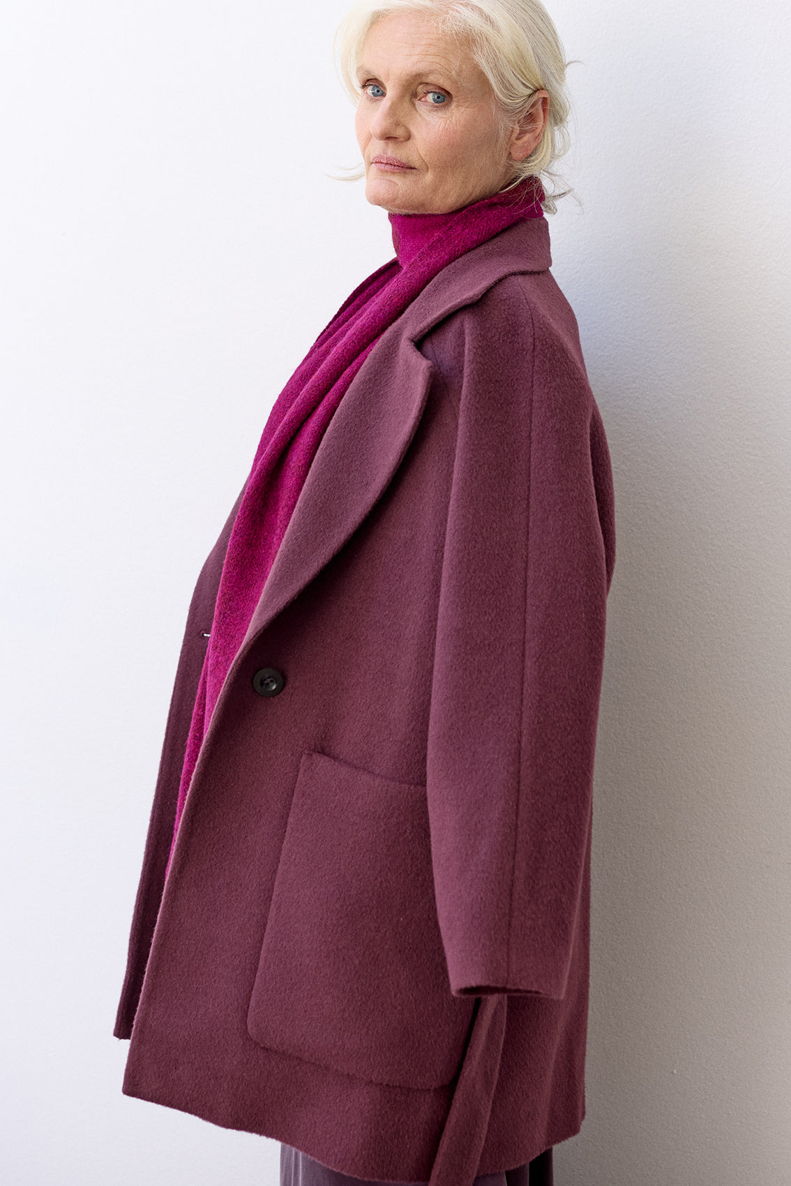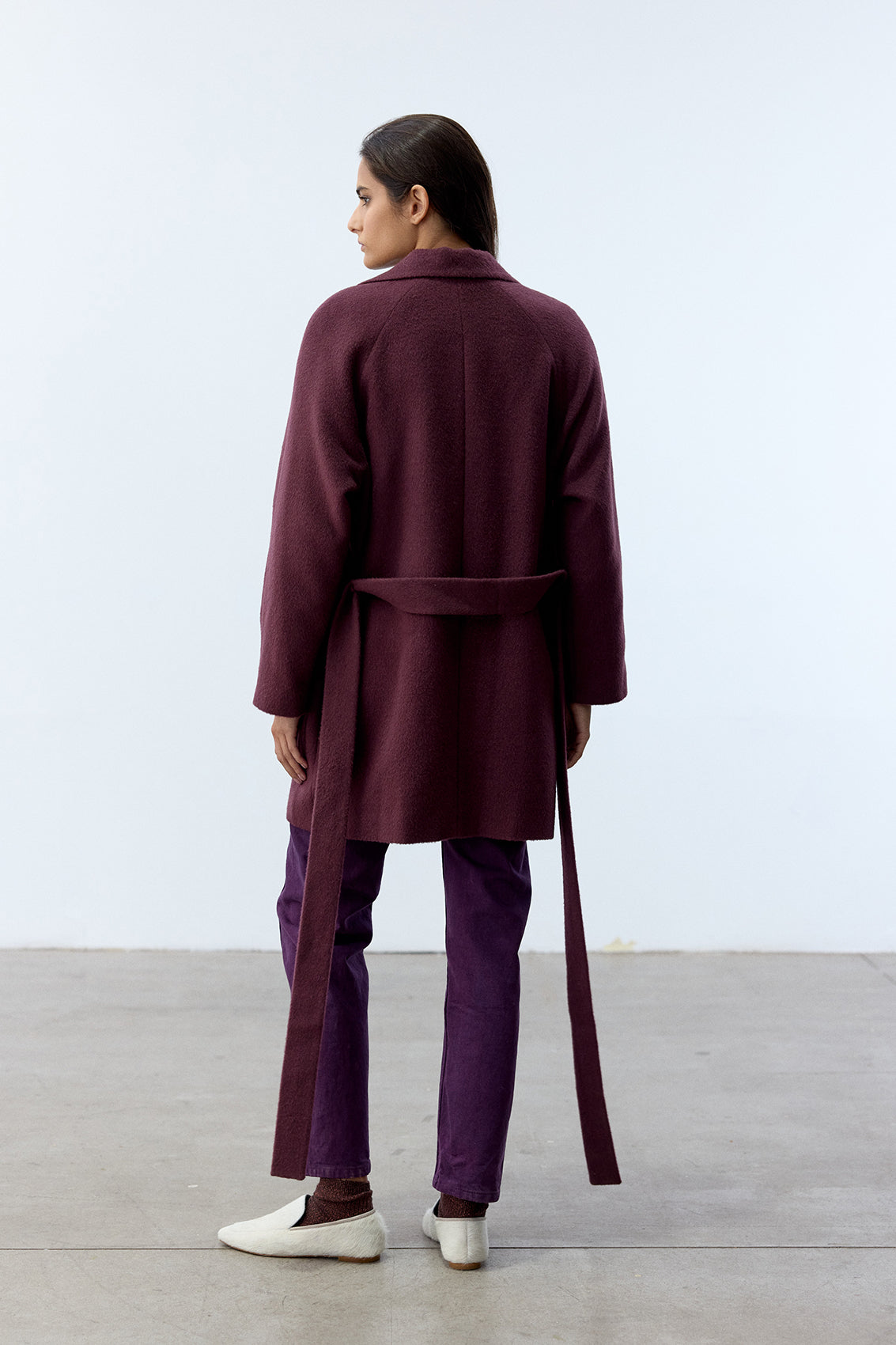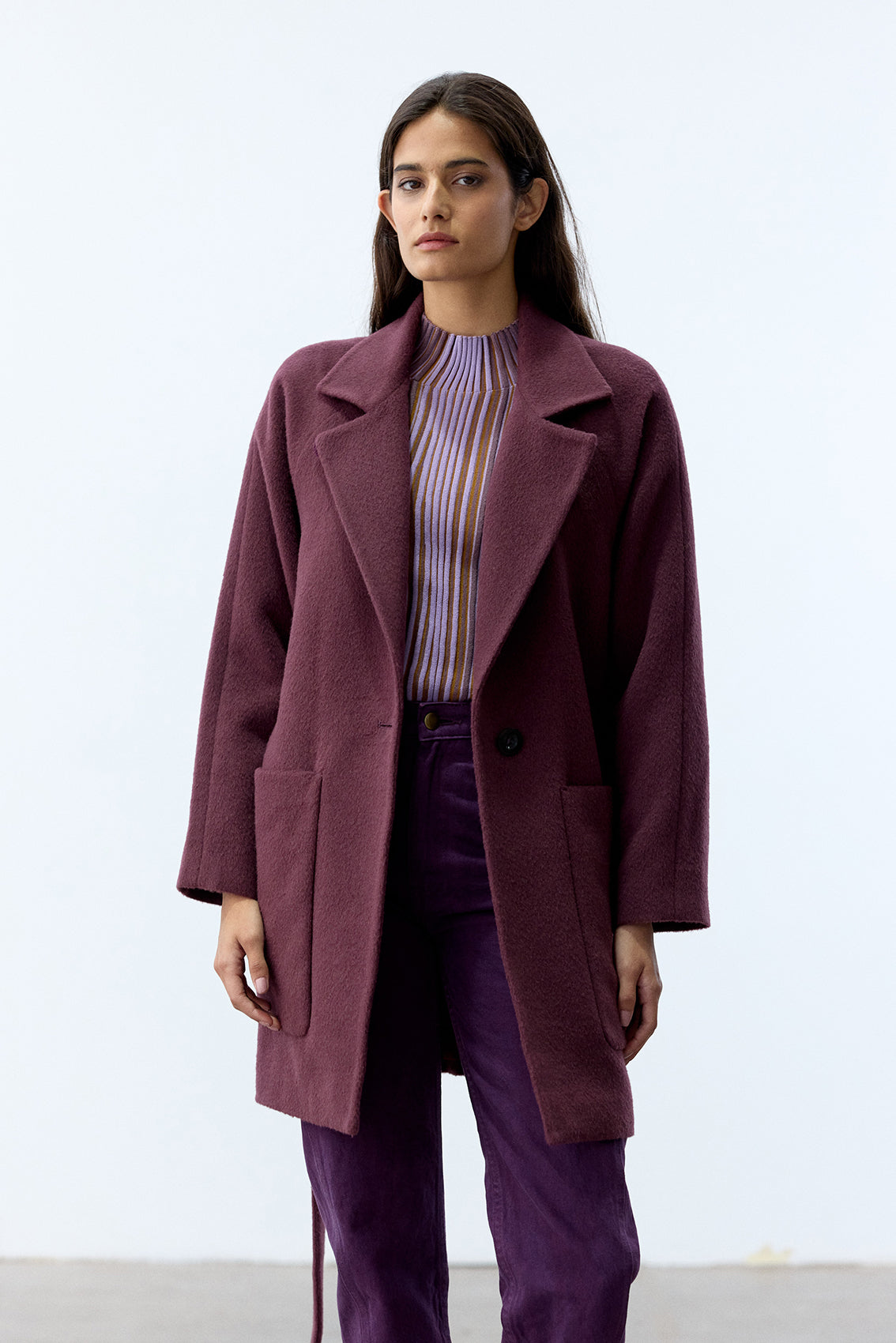 Notch Collar Short Baby Alpaca Coat - Berenjena