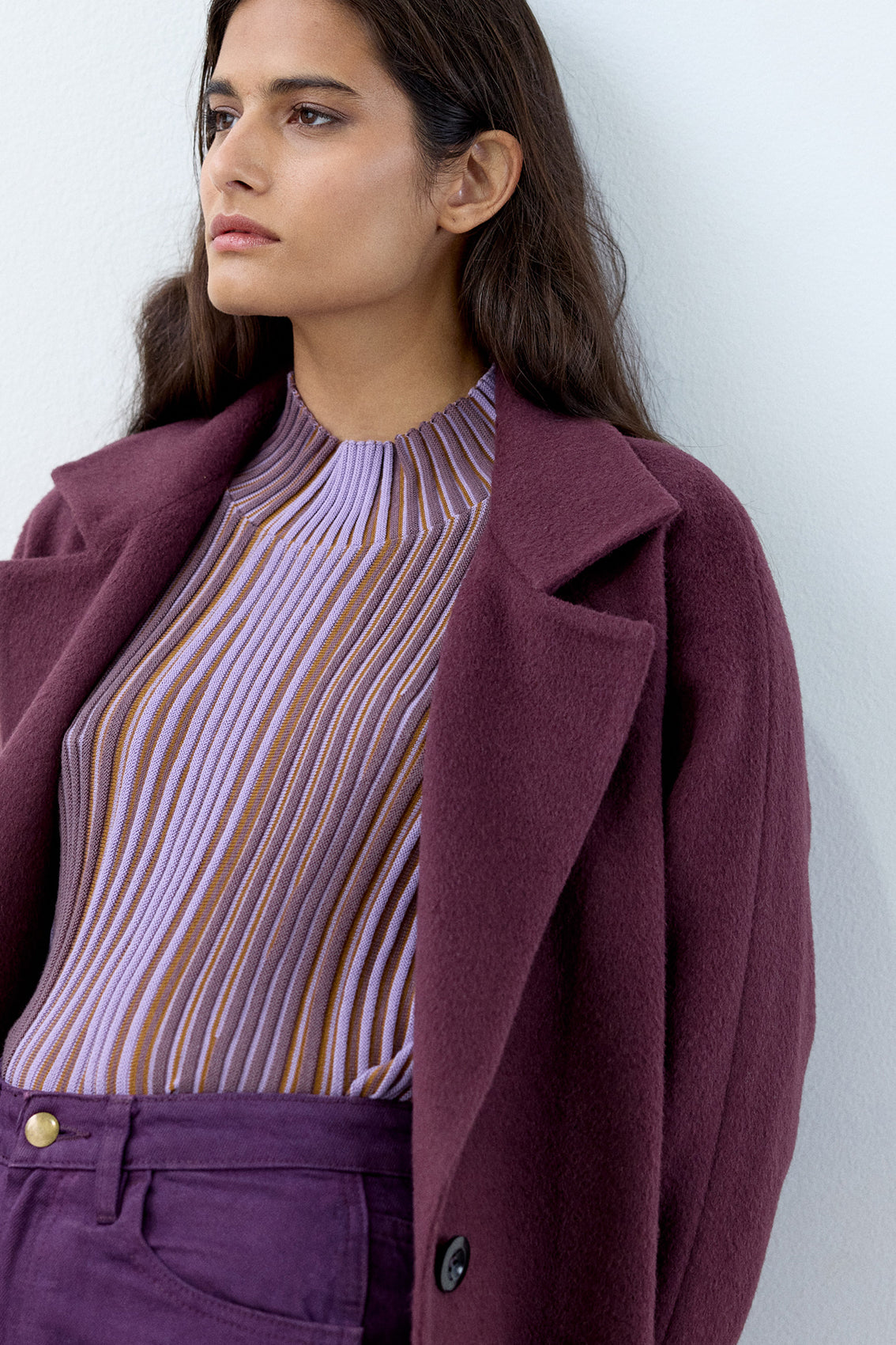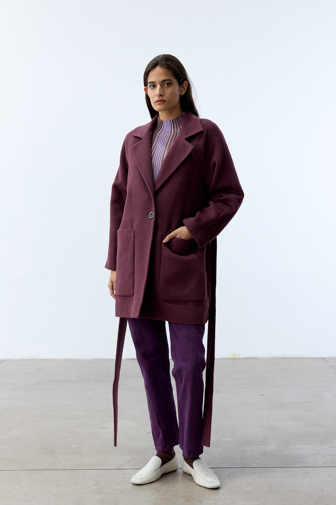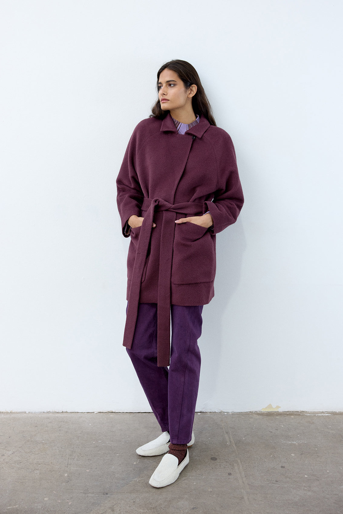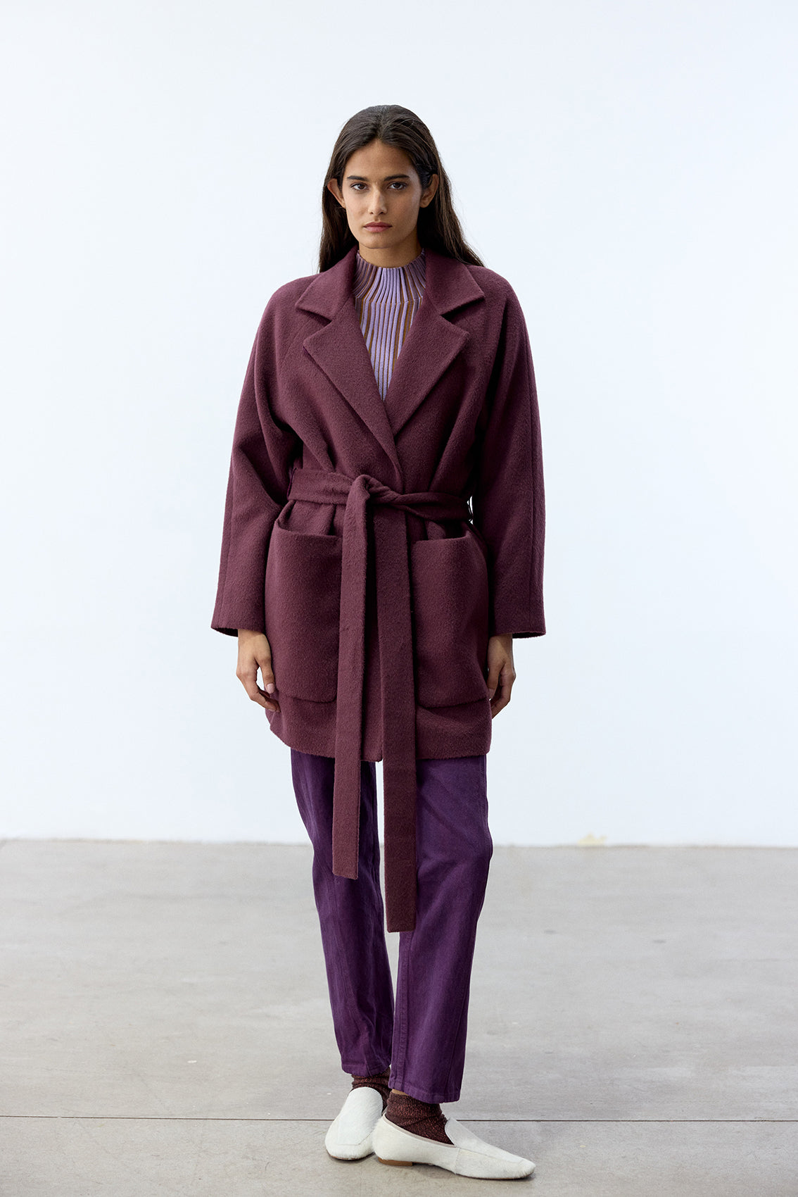 Notch Collar Short Baby Alpaca Coat - Berenjena