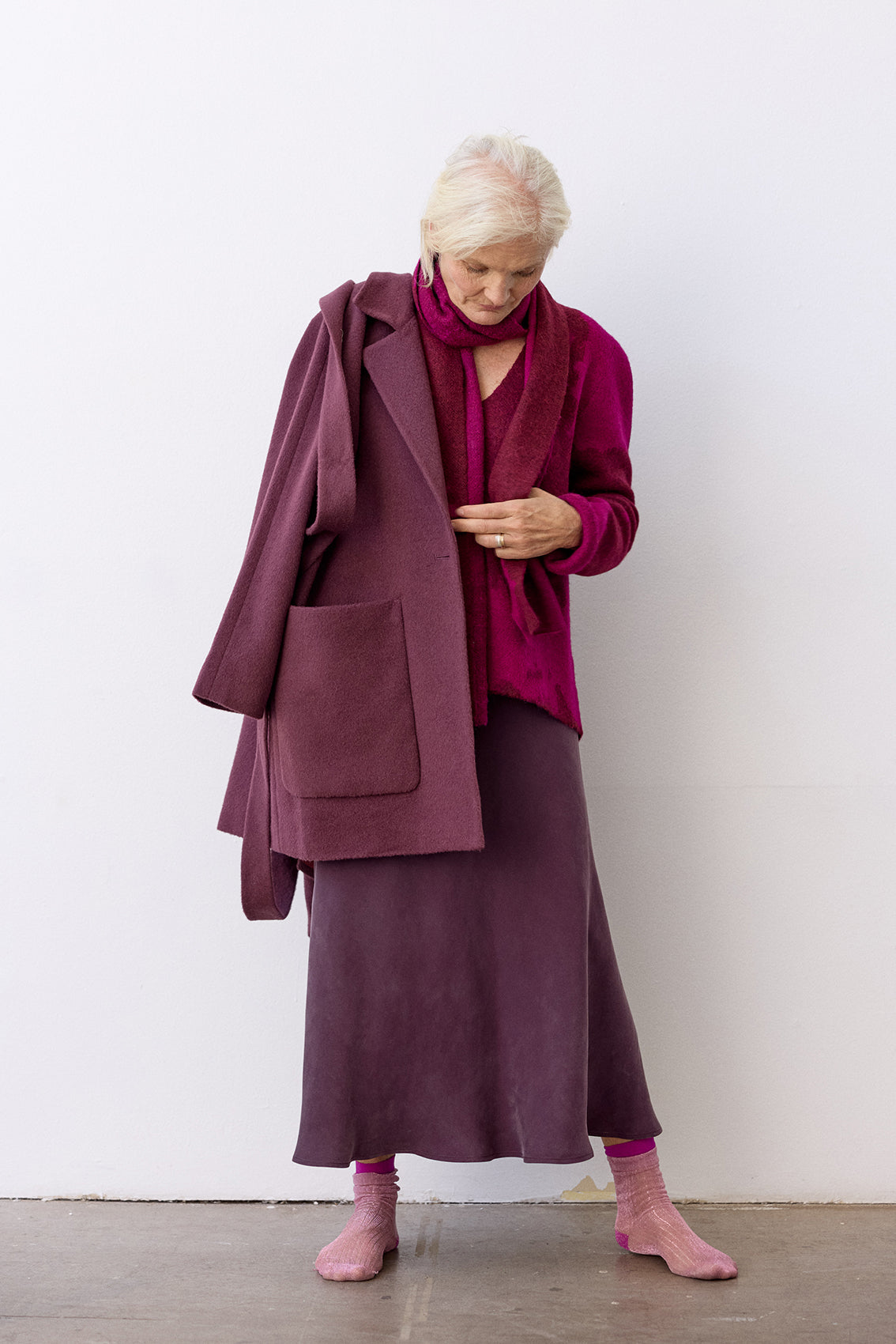 Soft baby alpaca full-length coat with a straight and perfectly relaxed silhouette. This coat features an elegant notch collar, raglan sleeves, front pockets, and an optional tie at the waist. Crafted in a baby alpaca and wool blend for a luxuriously comfortable feel. Warm, lightweight, and very soft to the touch, with a brushed finish. Fully lined. A staple piece to wear year after year.