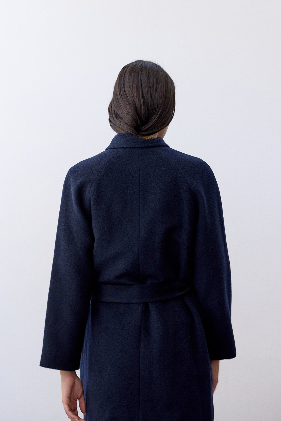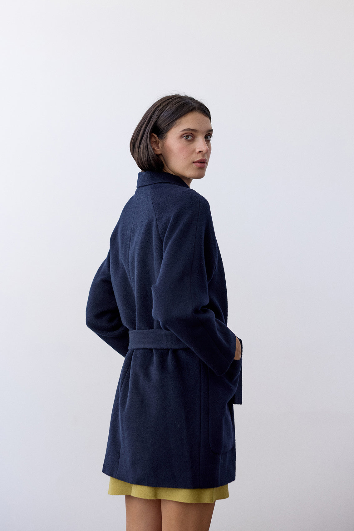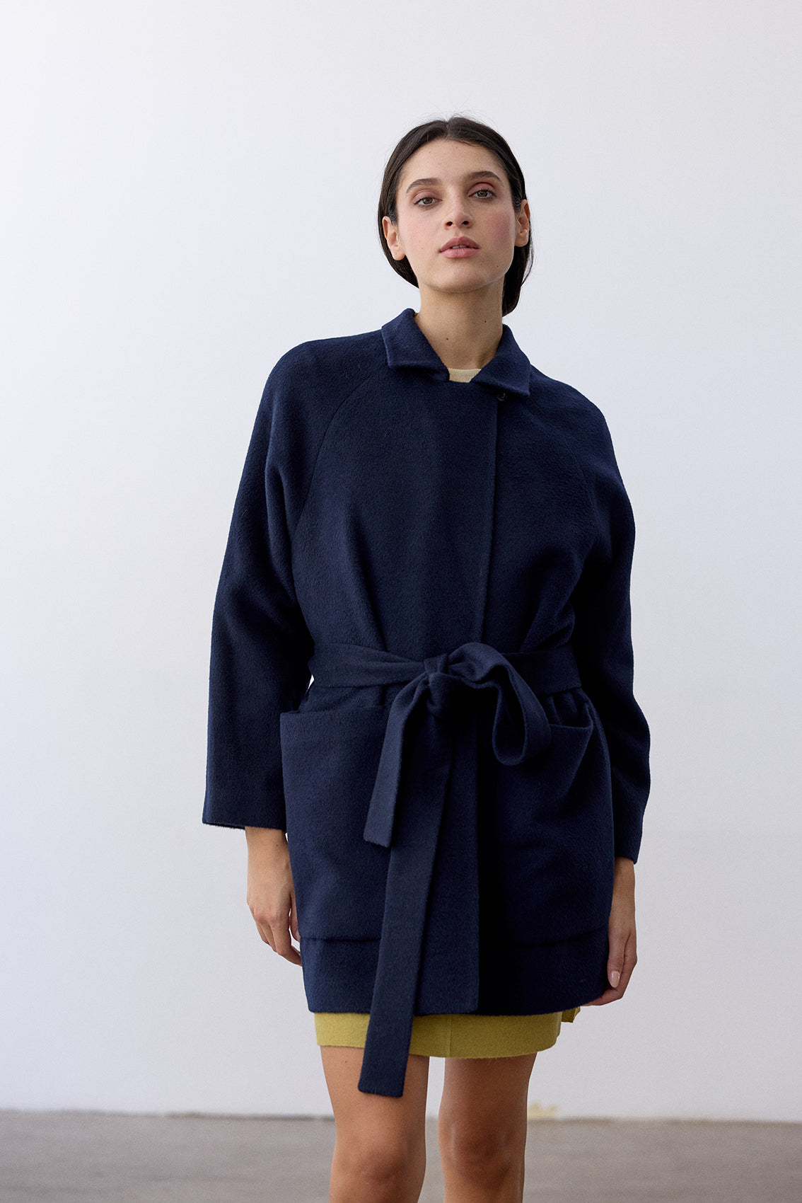 Soft baby alpaca coat with a straight and perfectly relaxed silhouette. This shorter coat features an elegant notch collar, raglan sleeves, front pockets, and an optional tie at the waist. Crafted in a baby alpaca and wool blend for a luxuriously comfortable feel. Warm, lightweight, and very soft to the touch, with a brushed finish. Fully lined. A staple piece to wear year after year.