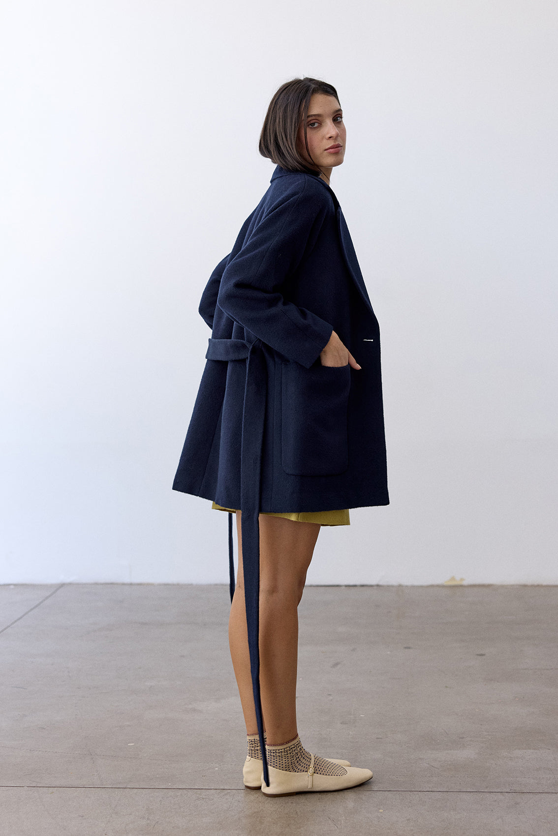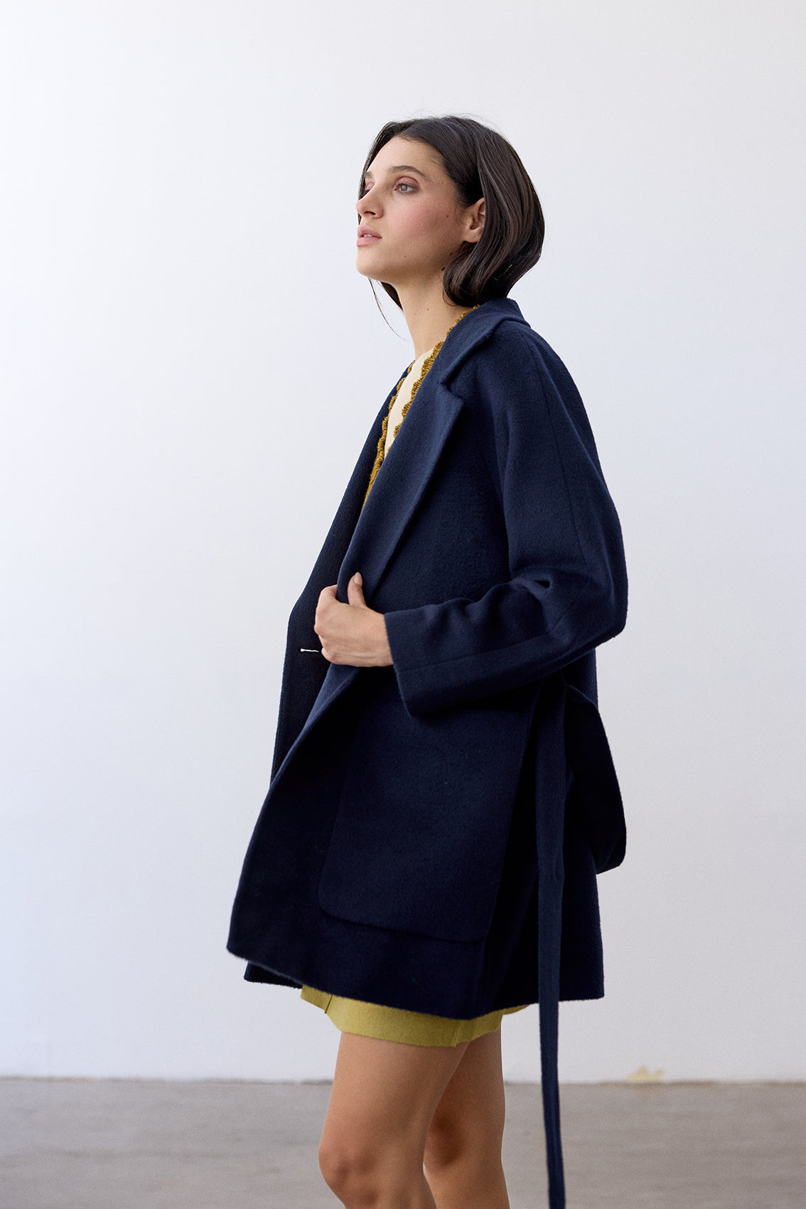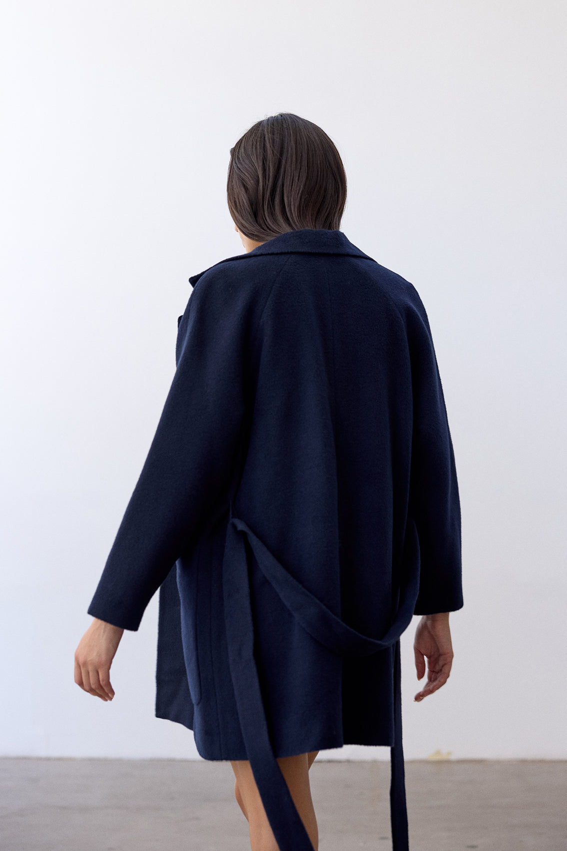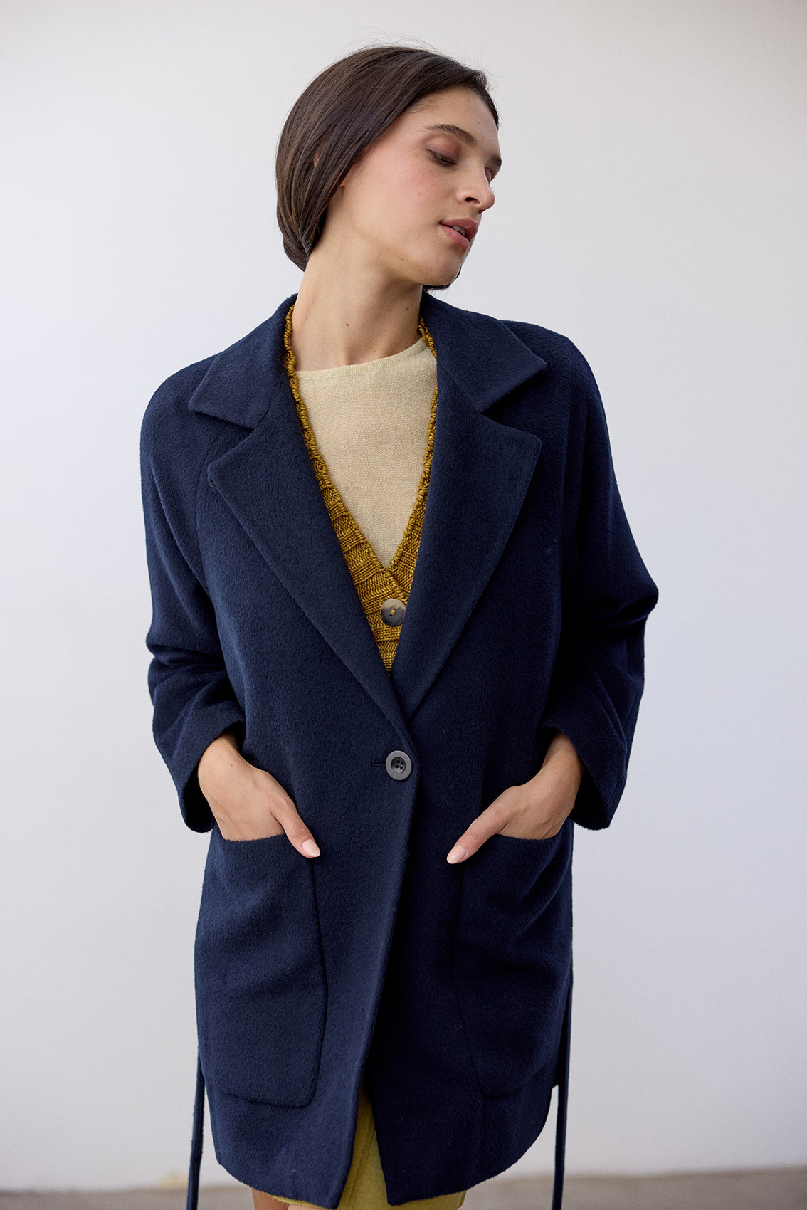 Soft baby alpaca coat with a straight and perfectly relaxed silhouette. This shorter coat features an elegant notch collar, raglan sleeves, front pockets, and an optional tie at the waist. Crafted in a baby alpaca and wool blend for a luxuriously comfortable feel. Warm, lightweight, and very soft to the touch, with a brushed finish. Fully lined. A staple piece to wear year after year.