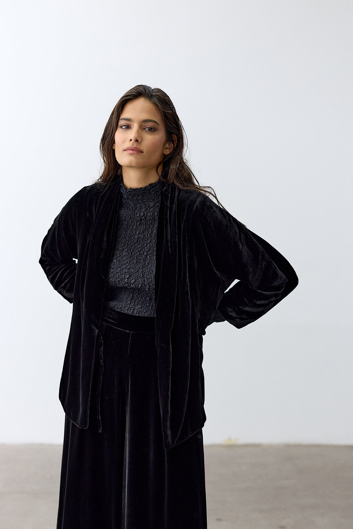 Cross-Over Silk Velvet Jacket - Ónix