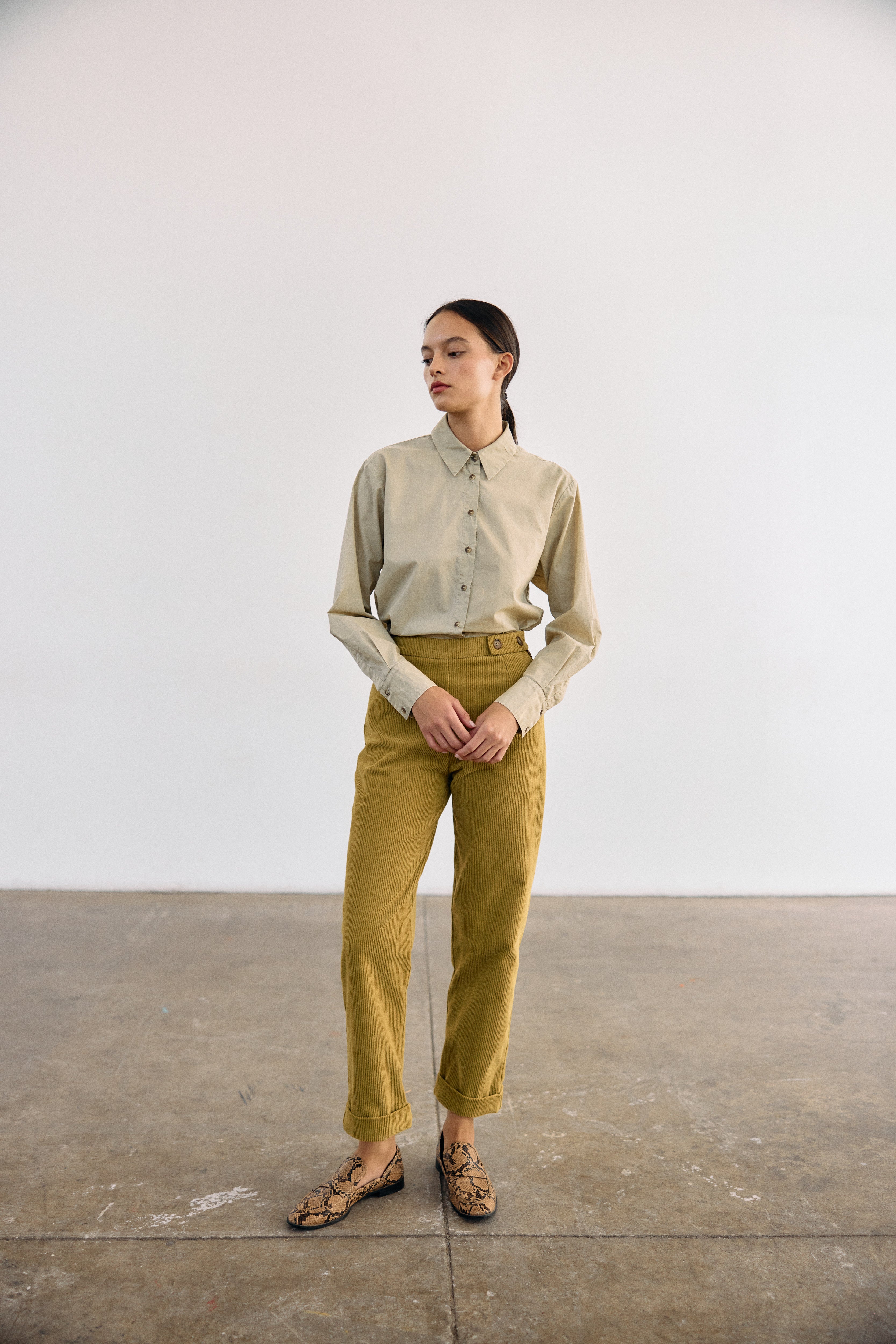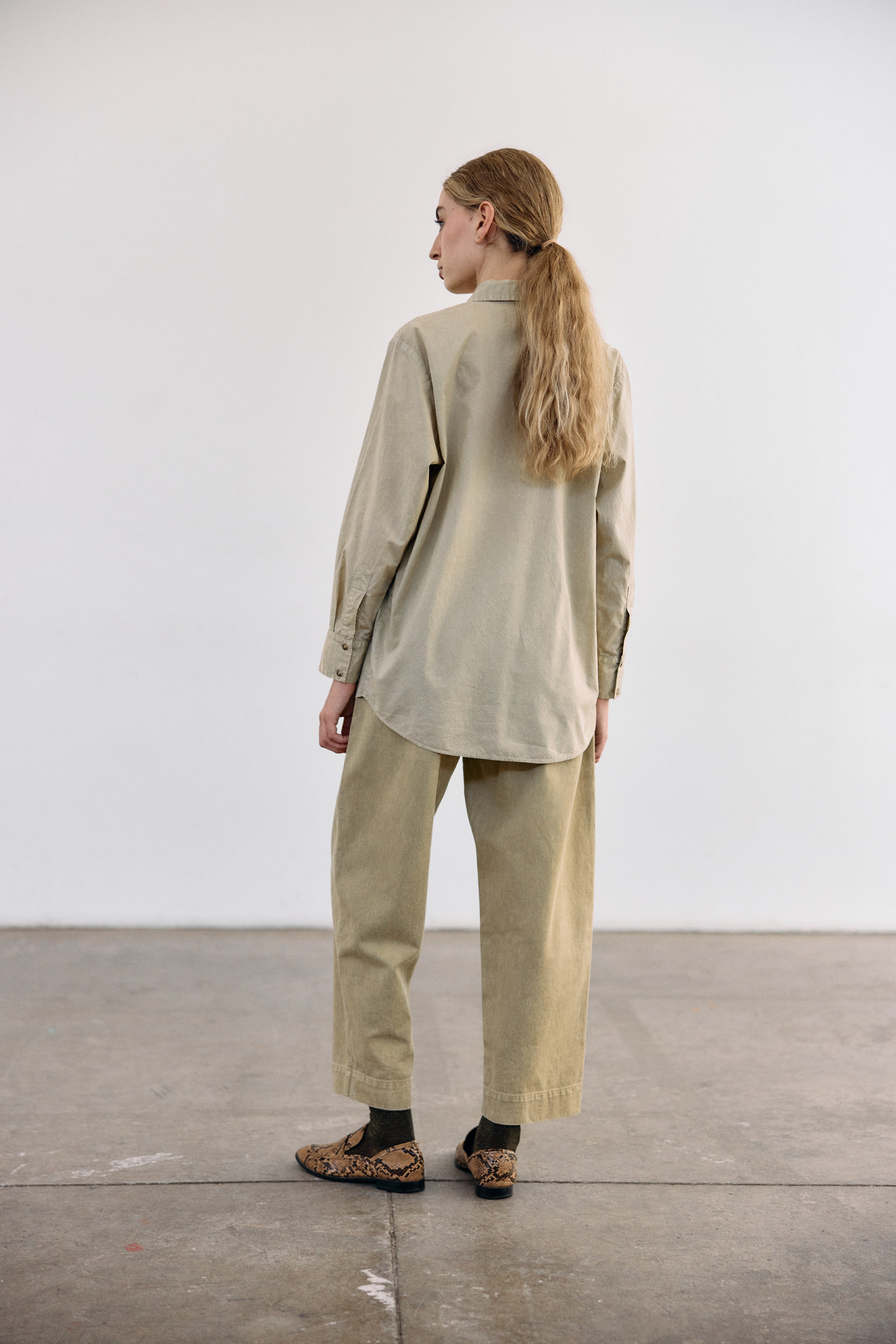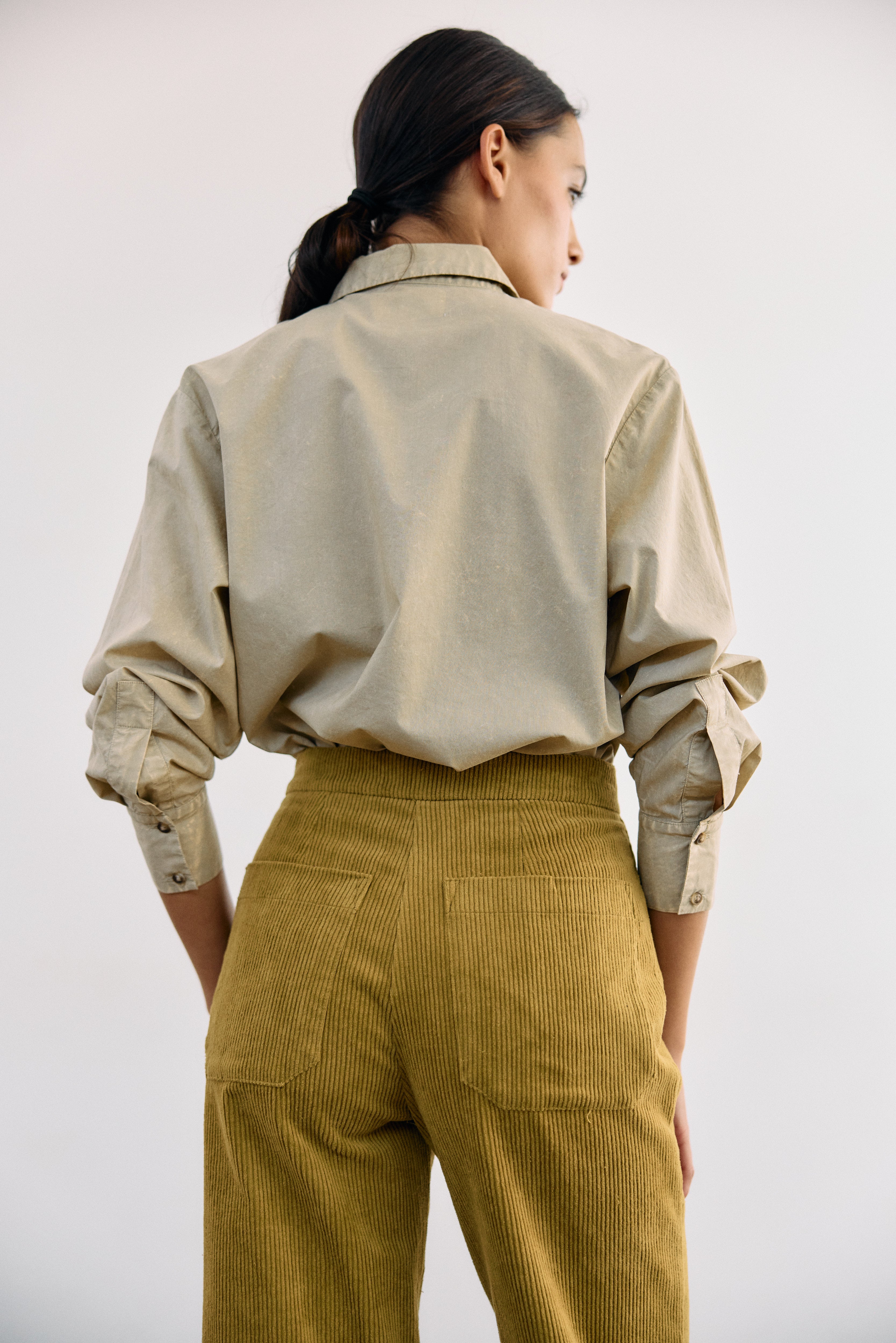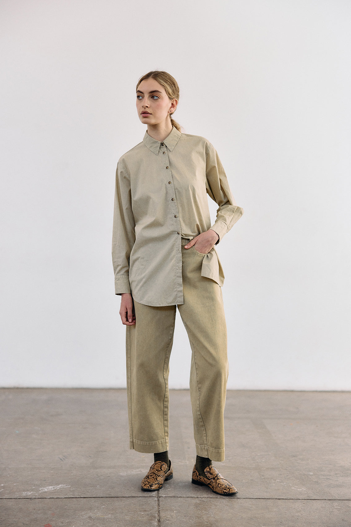 Essential shirt made in 100% pima cotton with a subtle washed effect. This blouse features a classic collar and cuffs, a front button closure, and a slightly oversized silhouette.